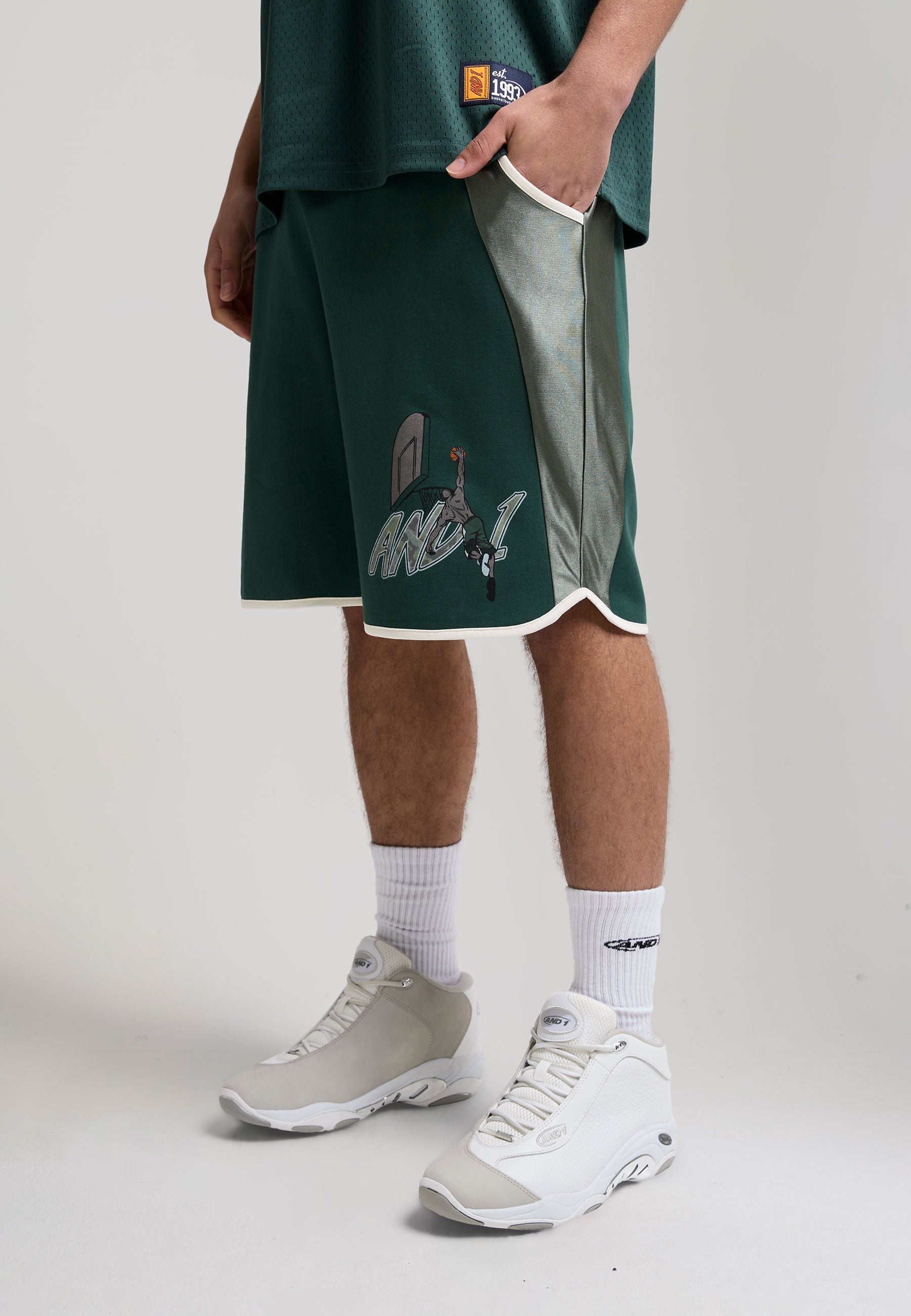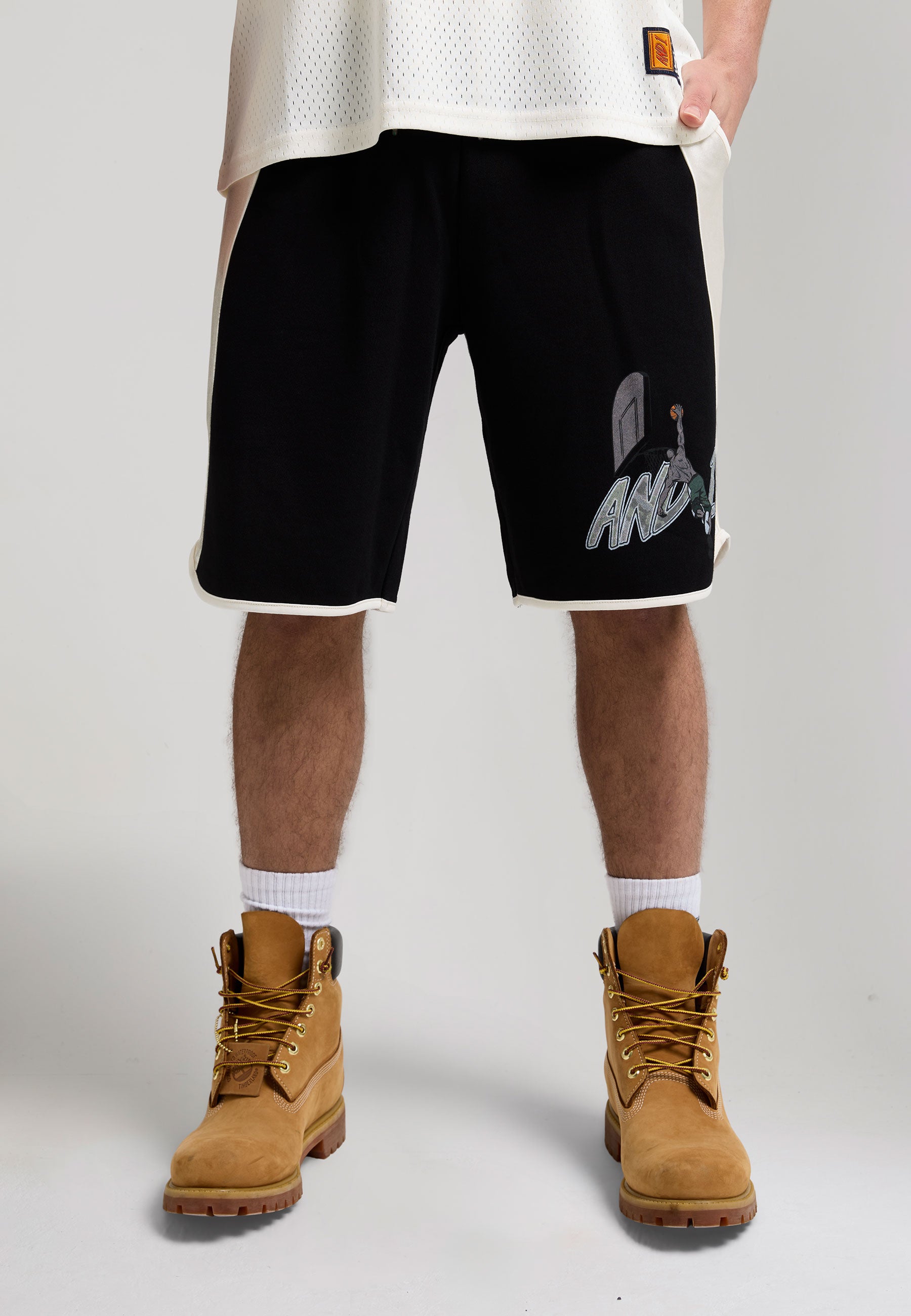 Mens On Court Applique Badge Jersey Basketball Jorts - Black