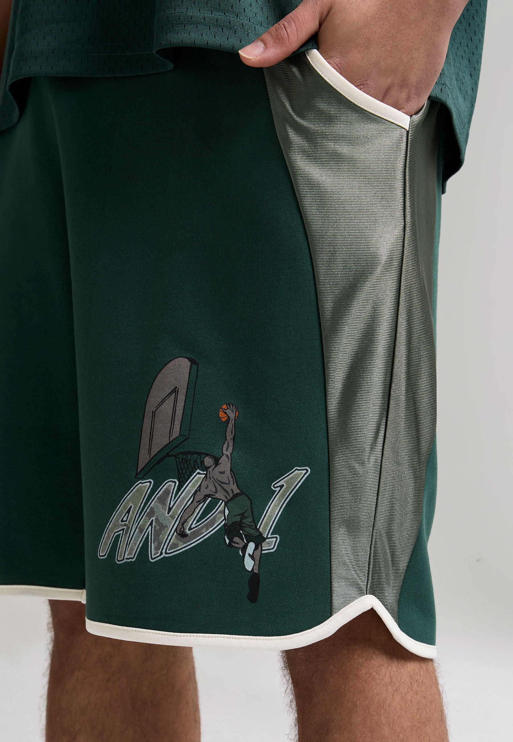 Mens Camo Dunk Panelled Shorts - Forest Green