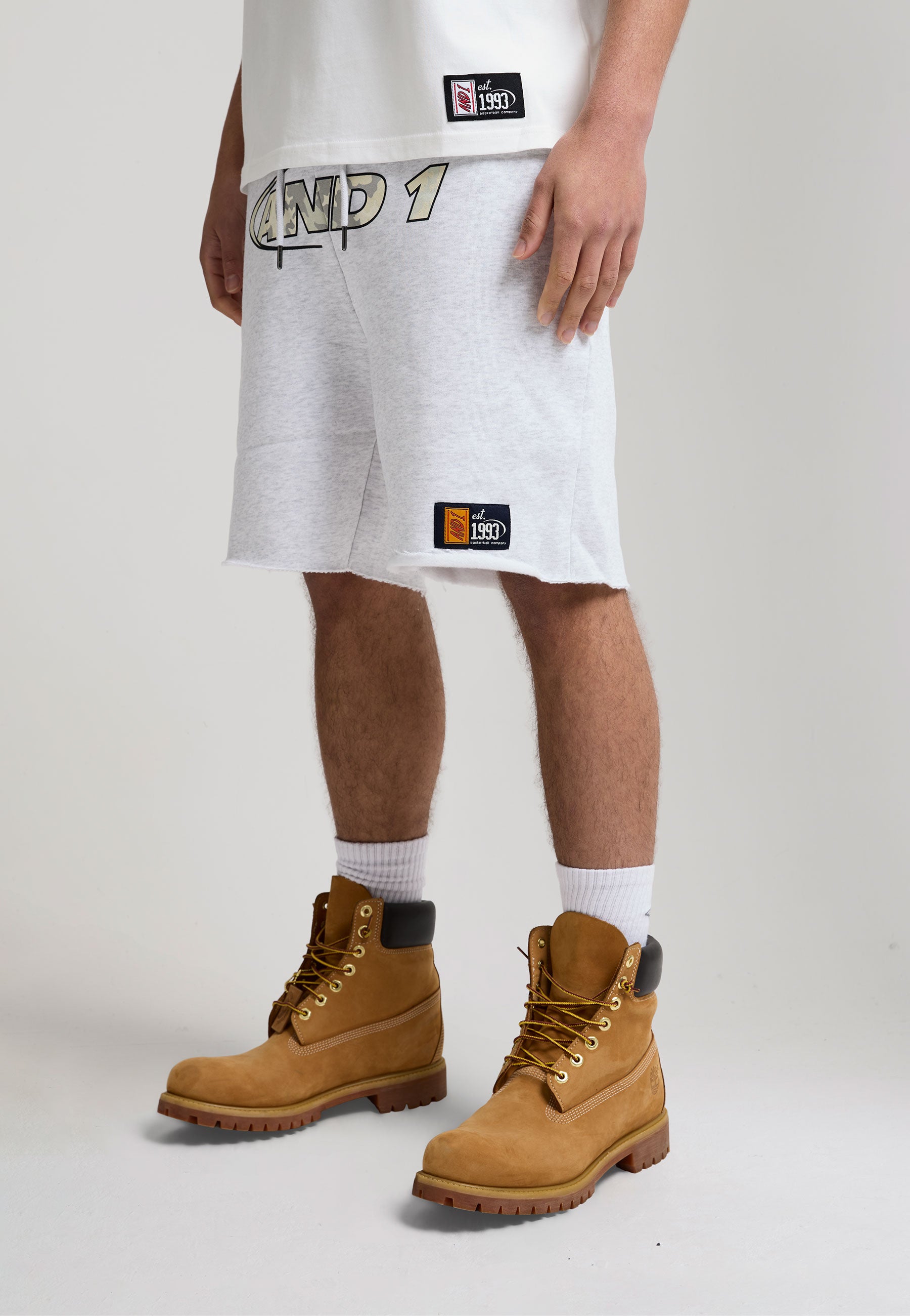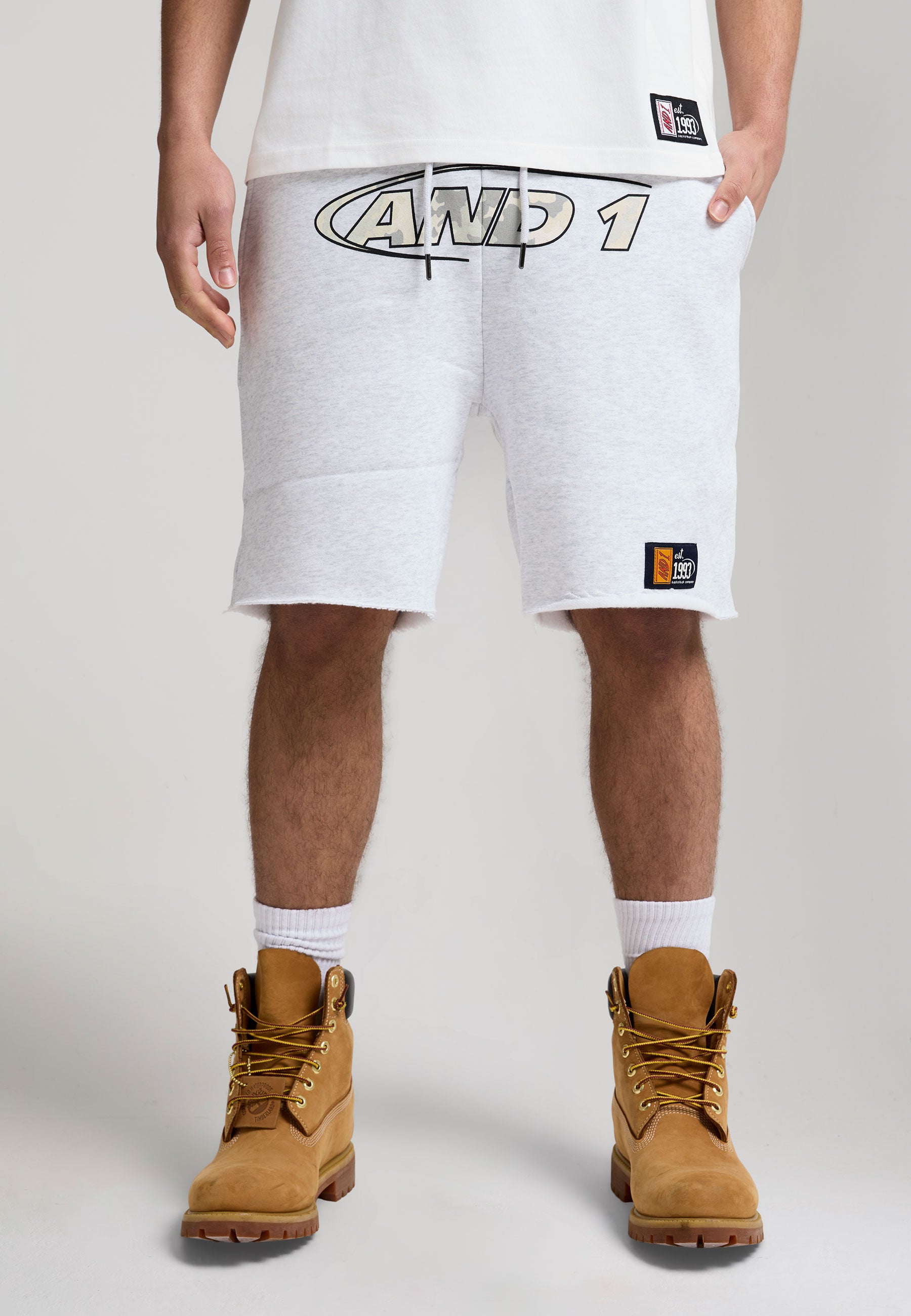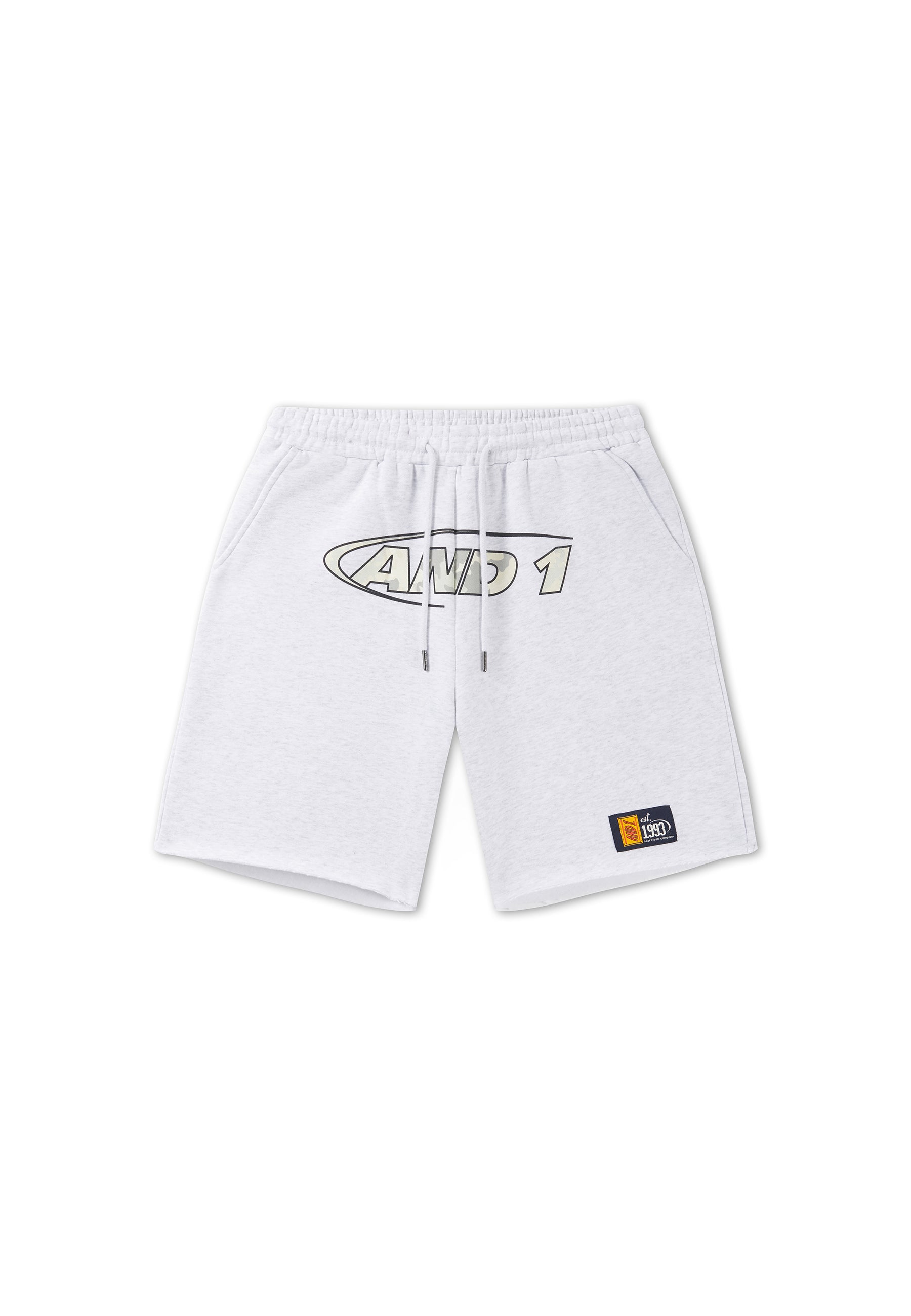 Mens Retro Logo Raw Hem Shorts - Ecru