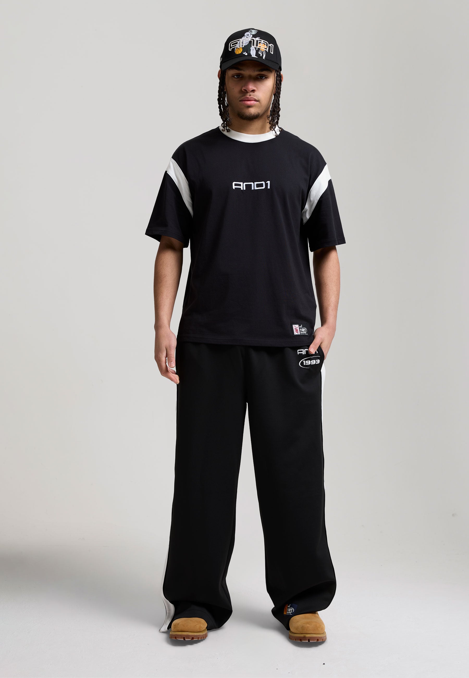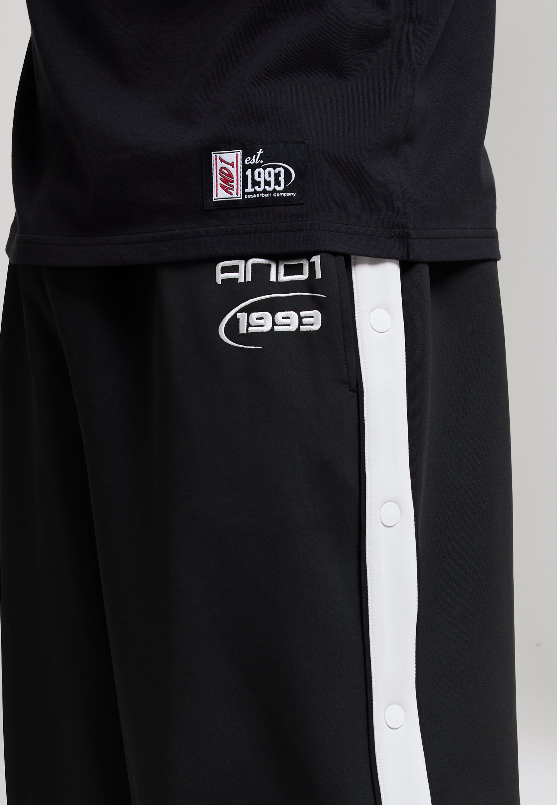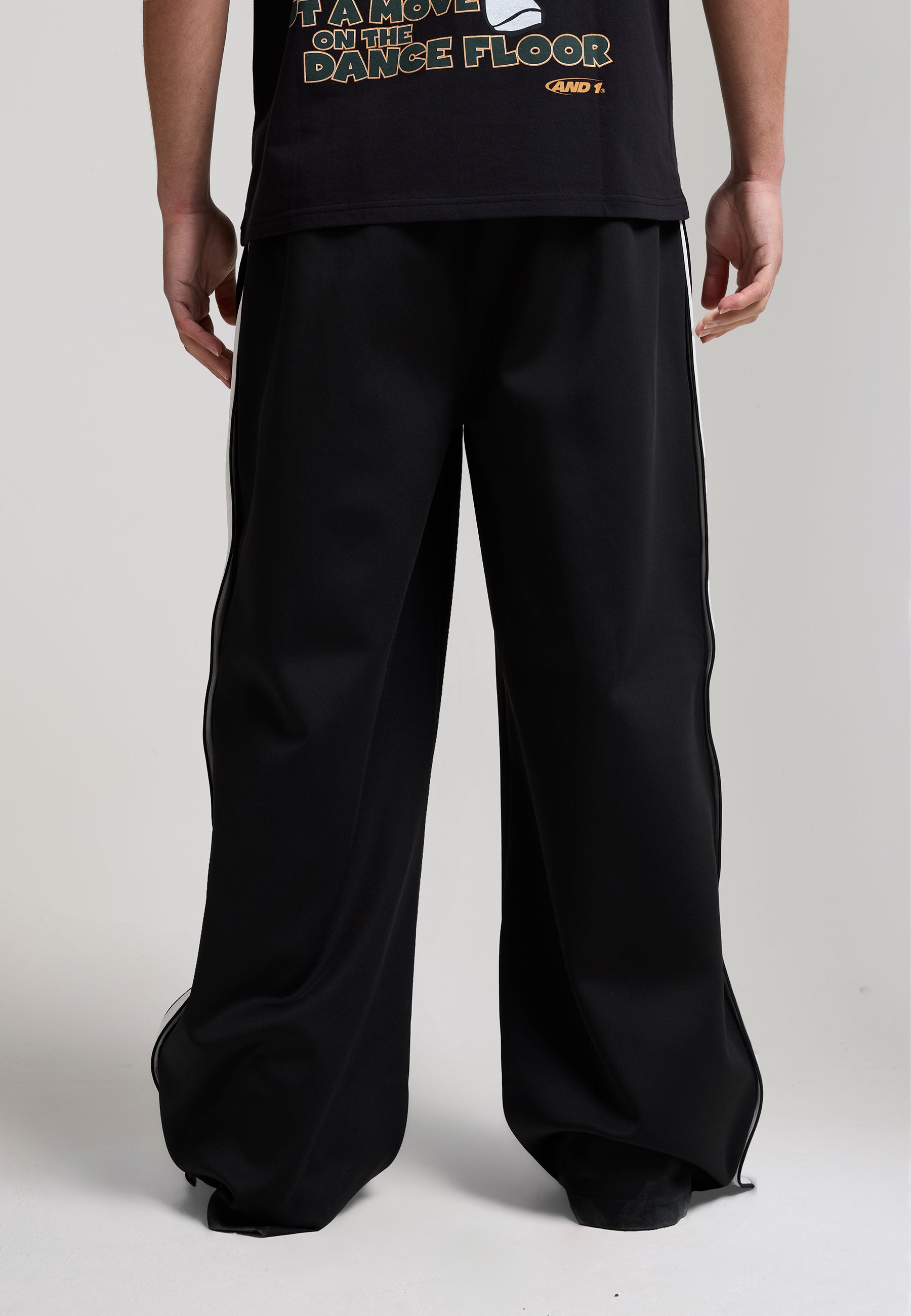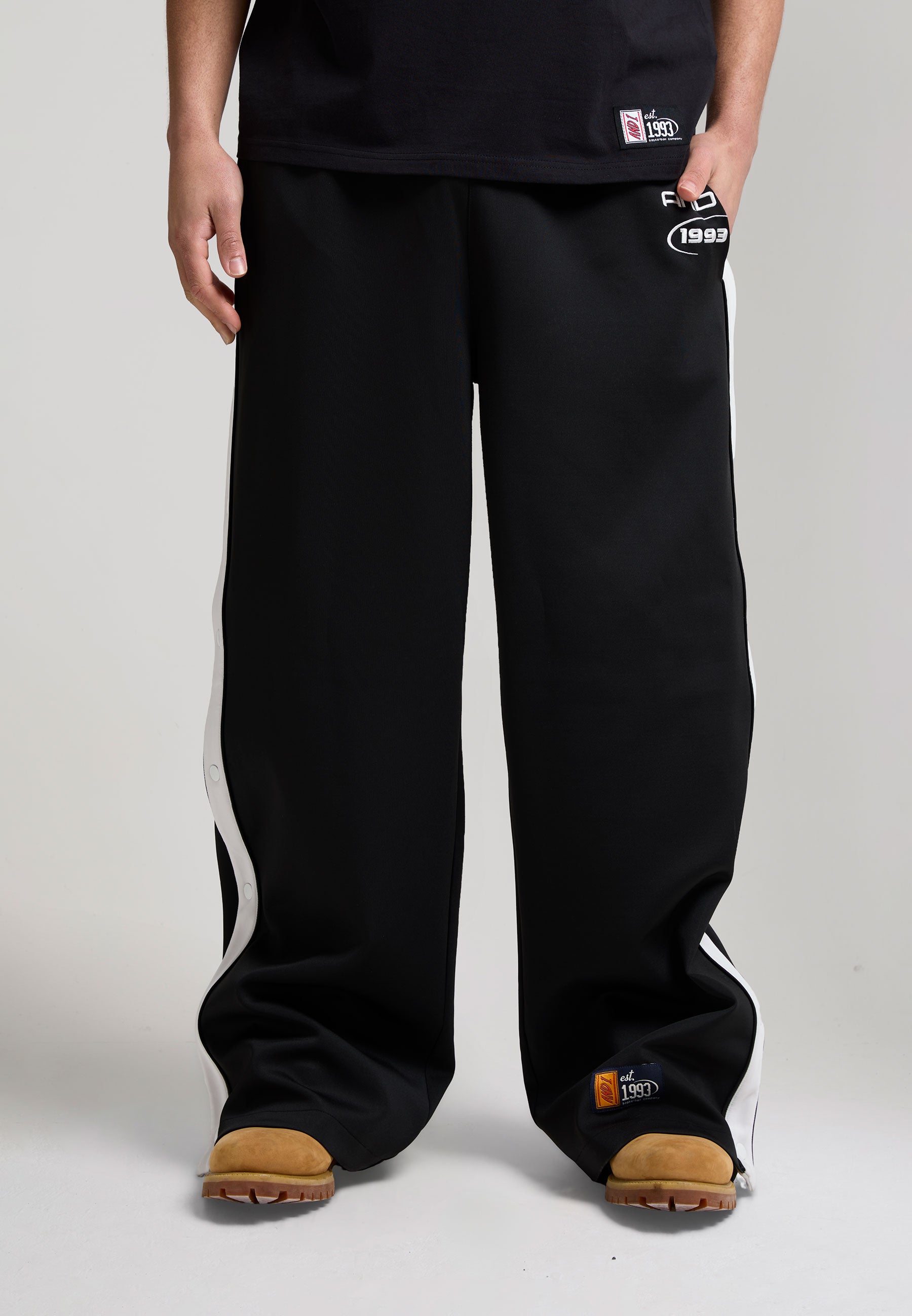 Mens Retro Relaxed Popper Joggers - Black