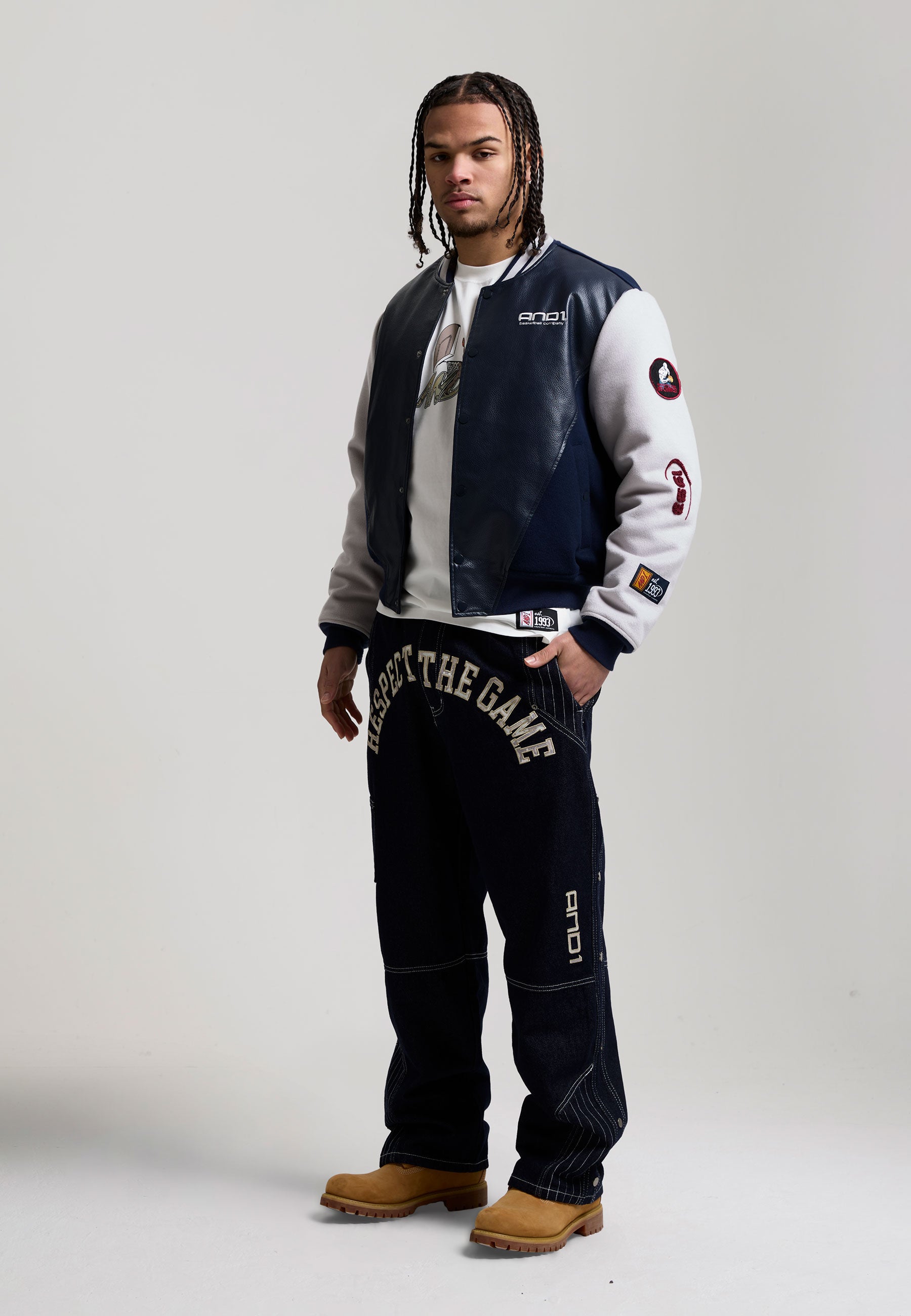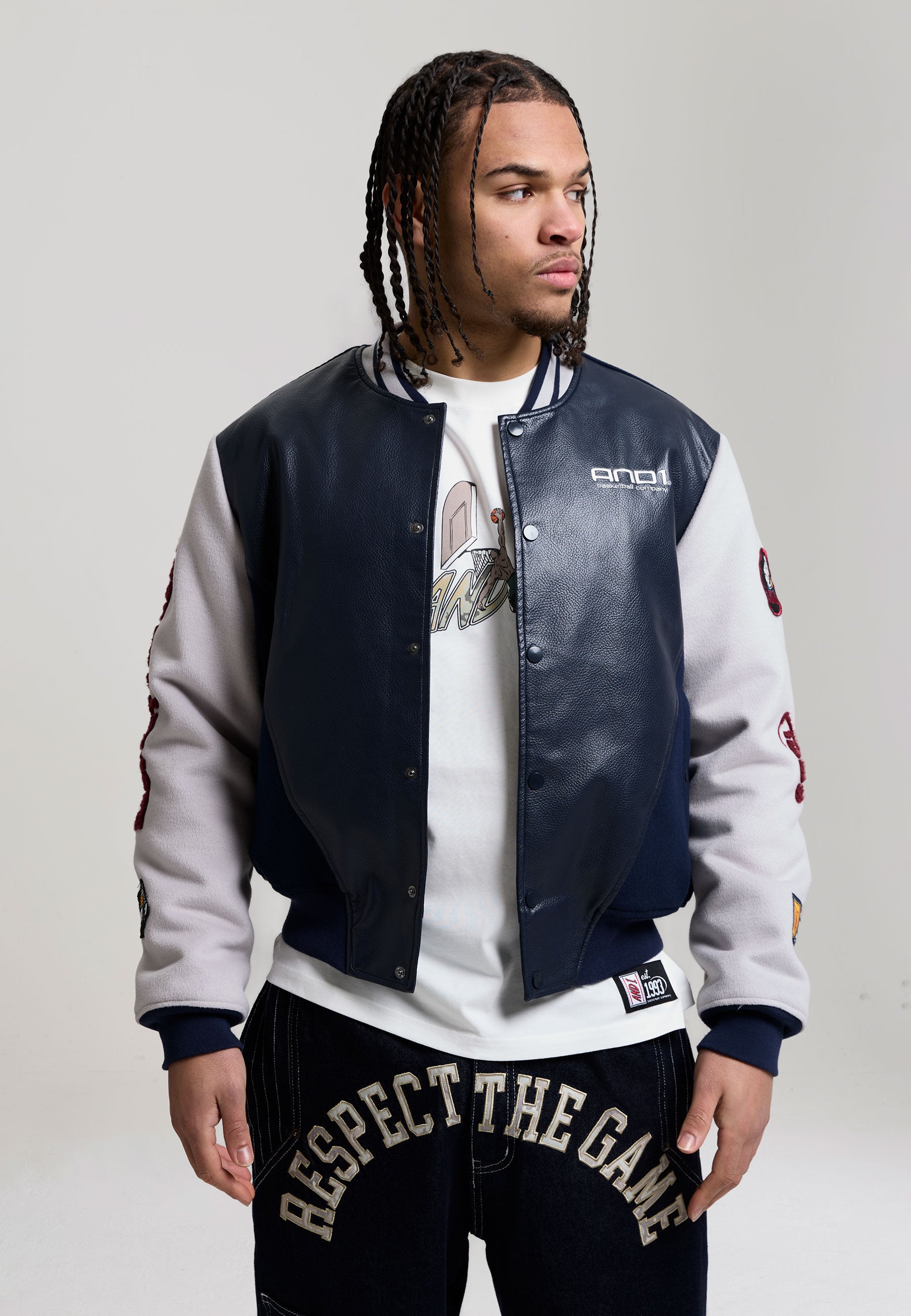 Mens Respect The Game Contrast Bomber Jacket - Navy
