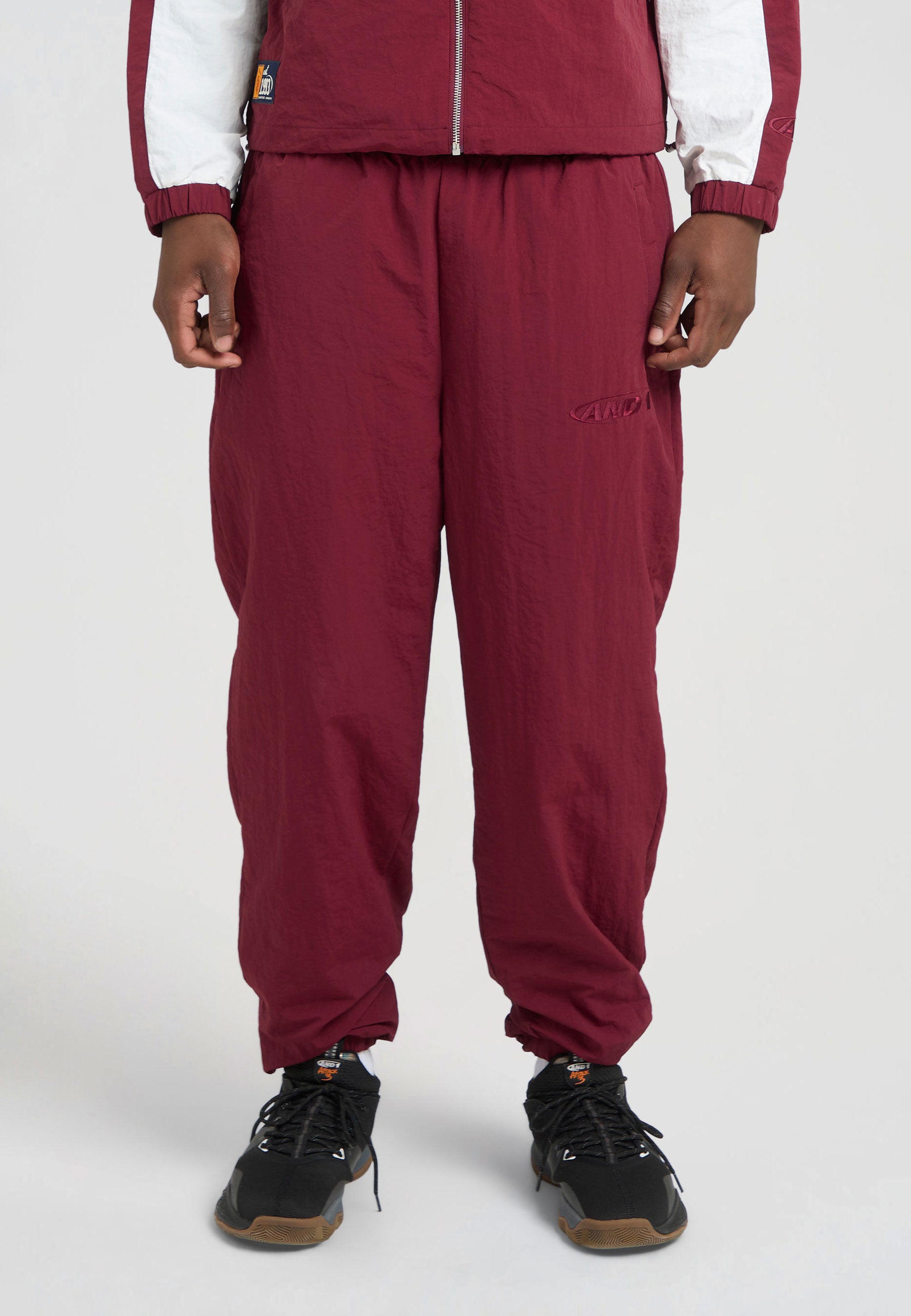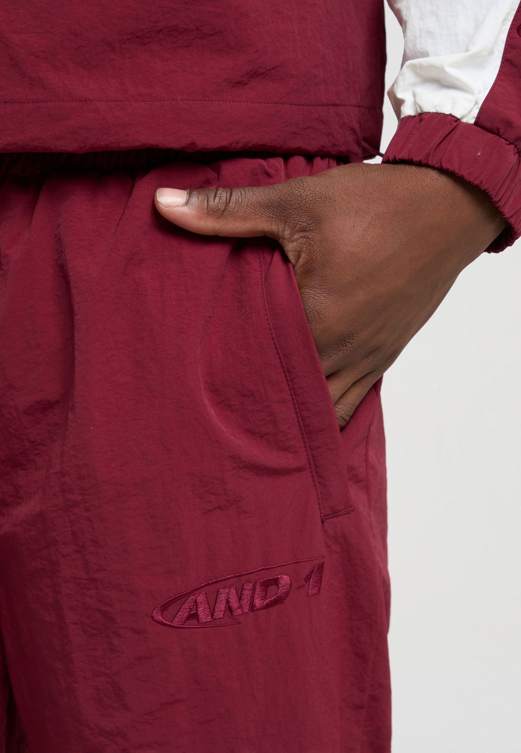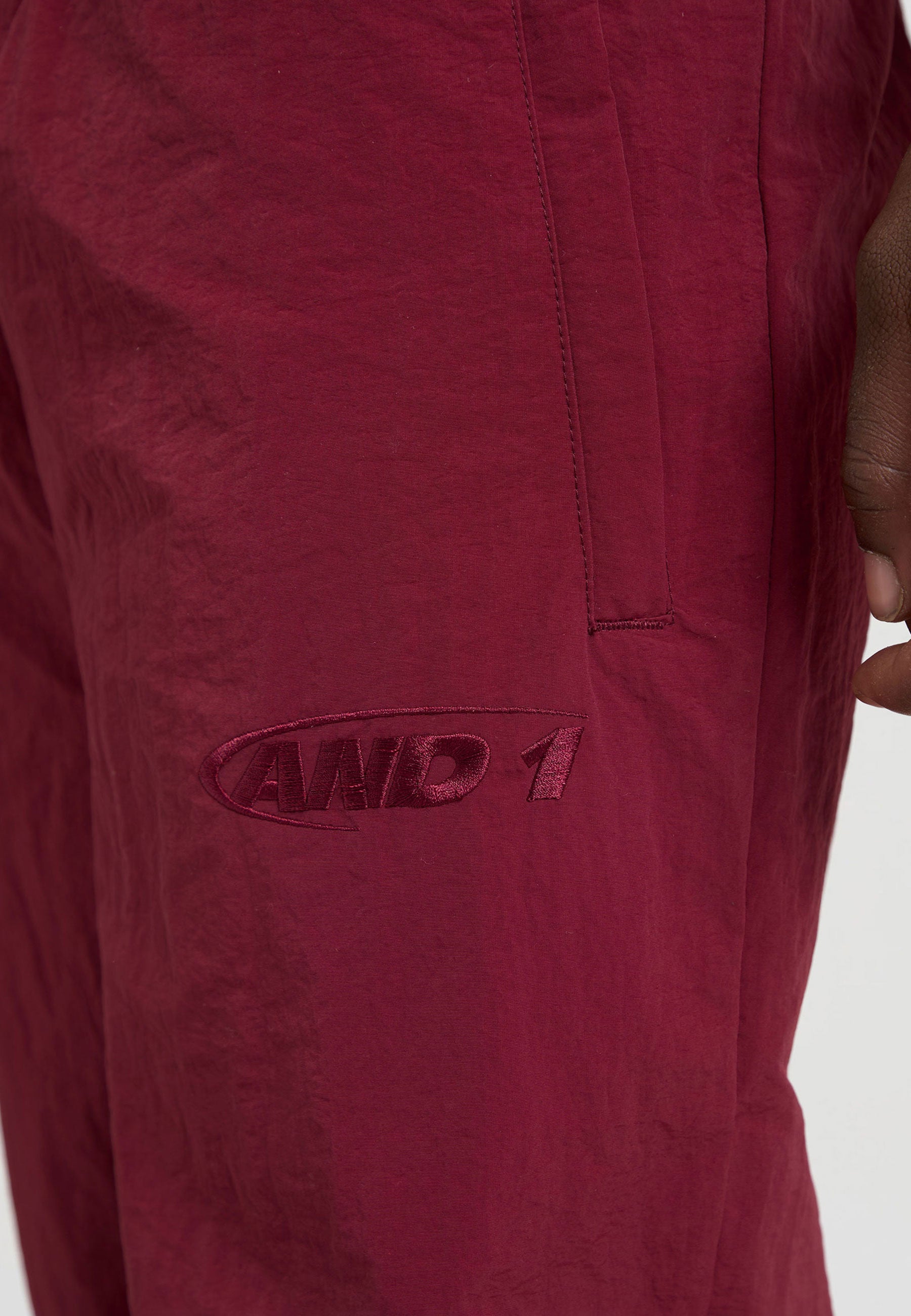 Mens Core Crinkle Nylon Track Pants - Burgundy