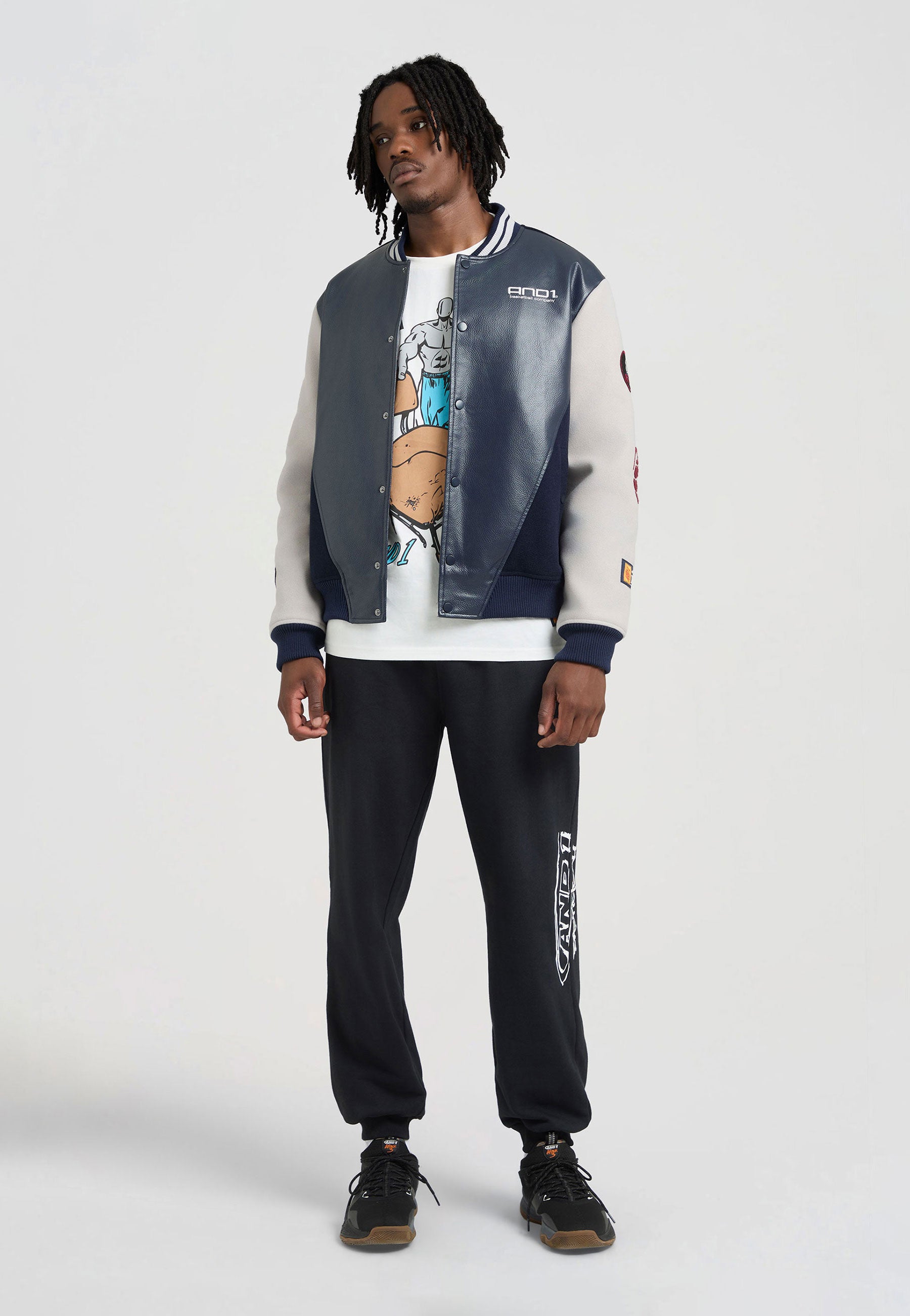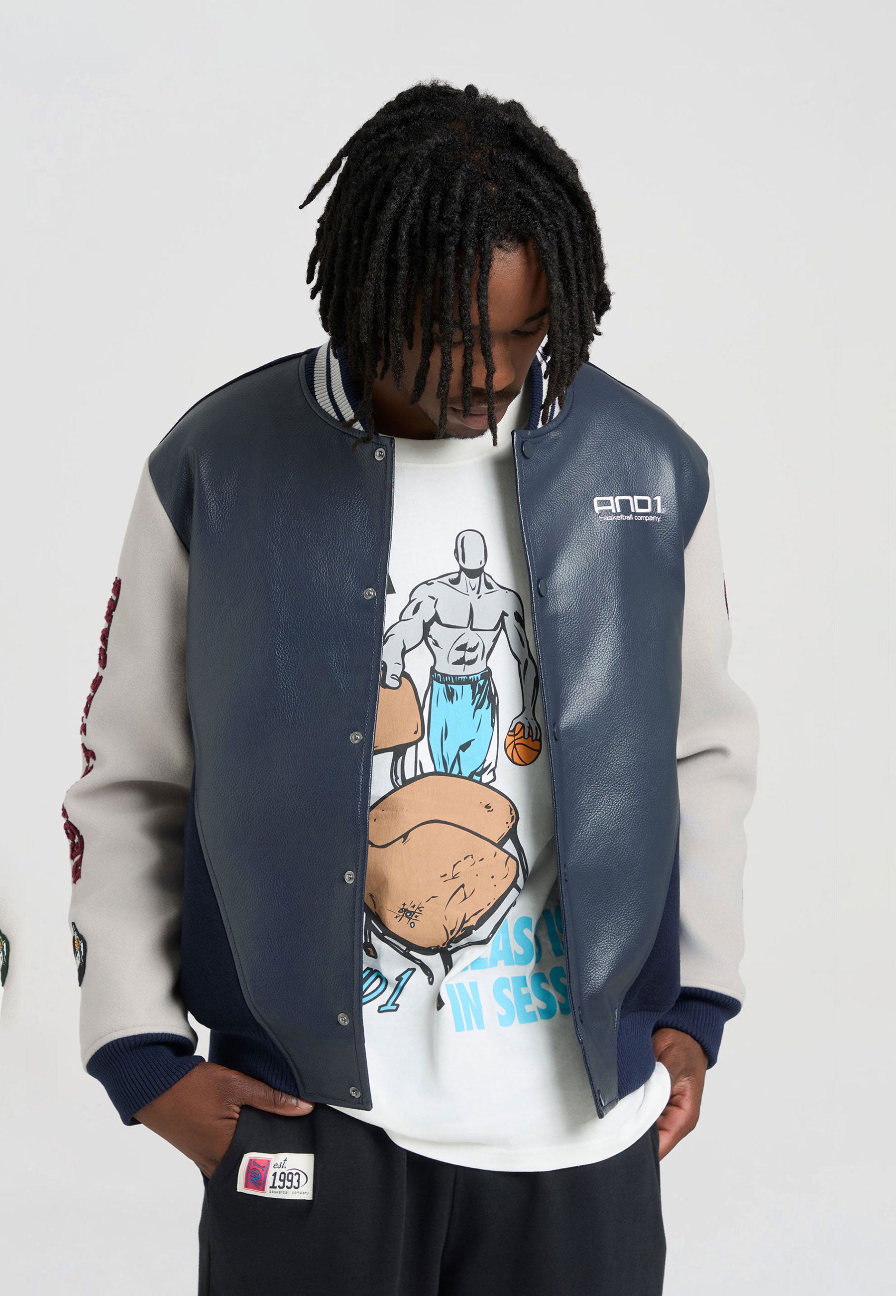 Mens Respect The Game Contrast Bomber Jacket - Navy