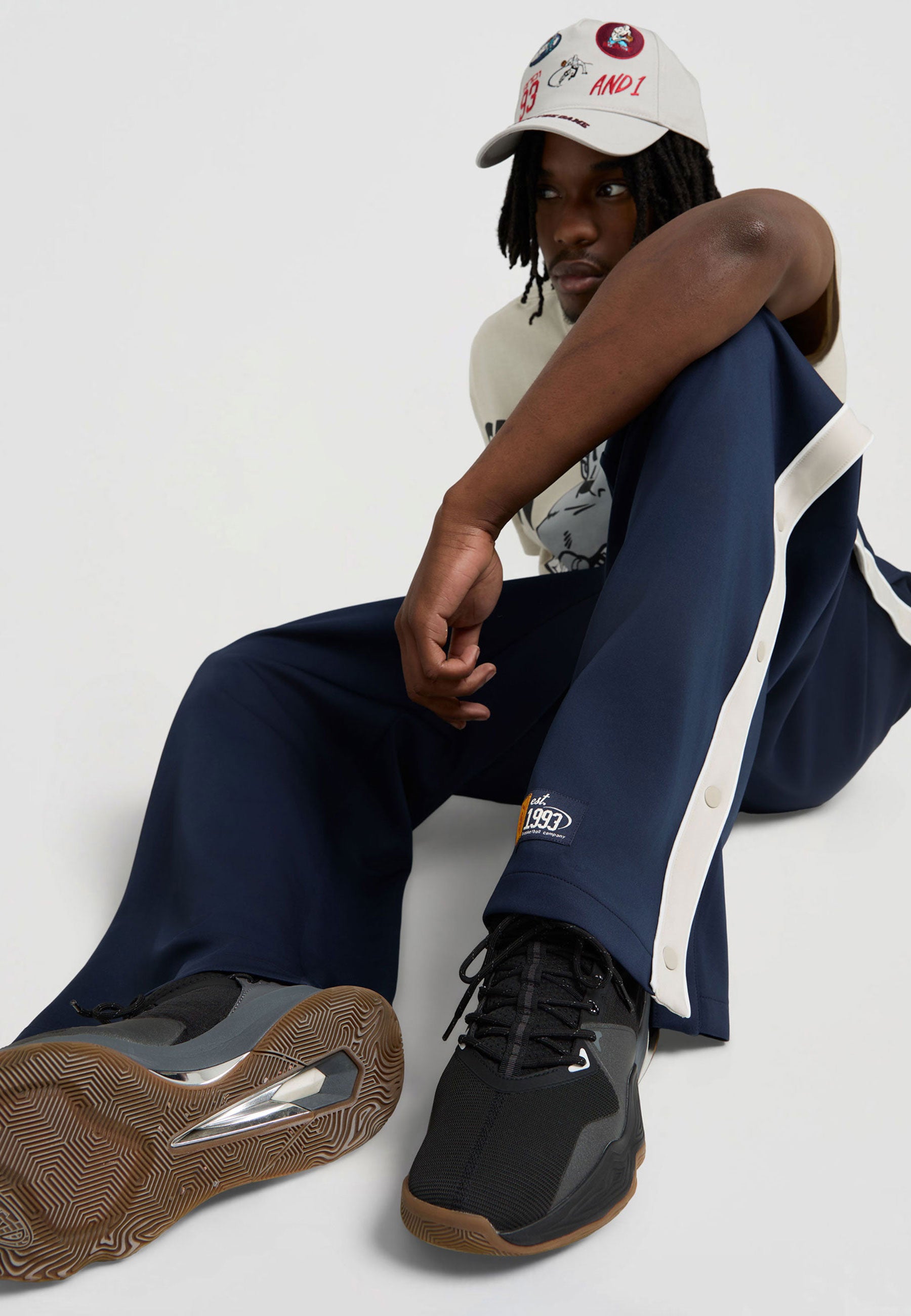 Mens Retro Relaxed Popper Joggers - Navy