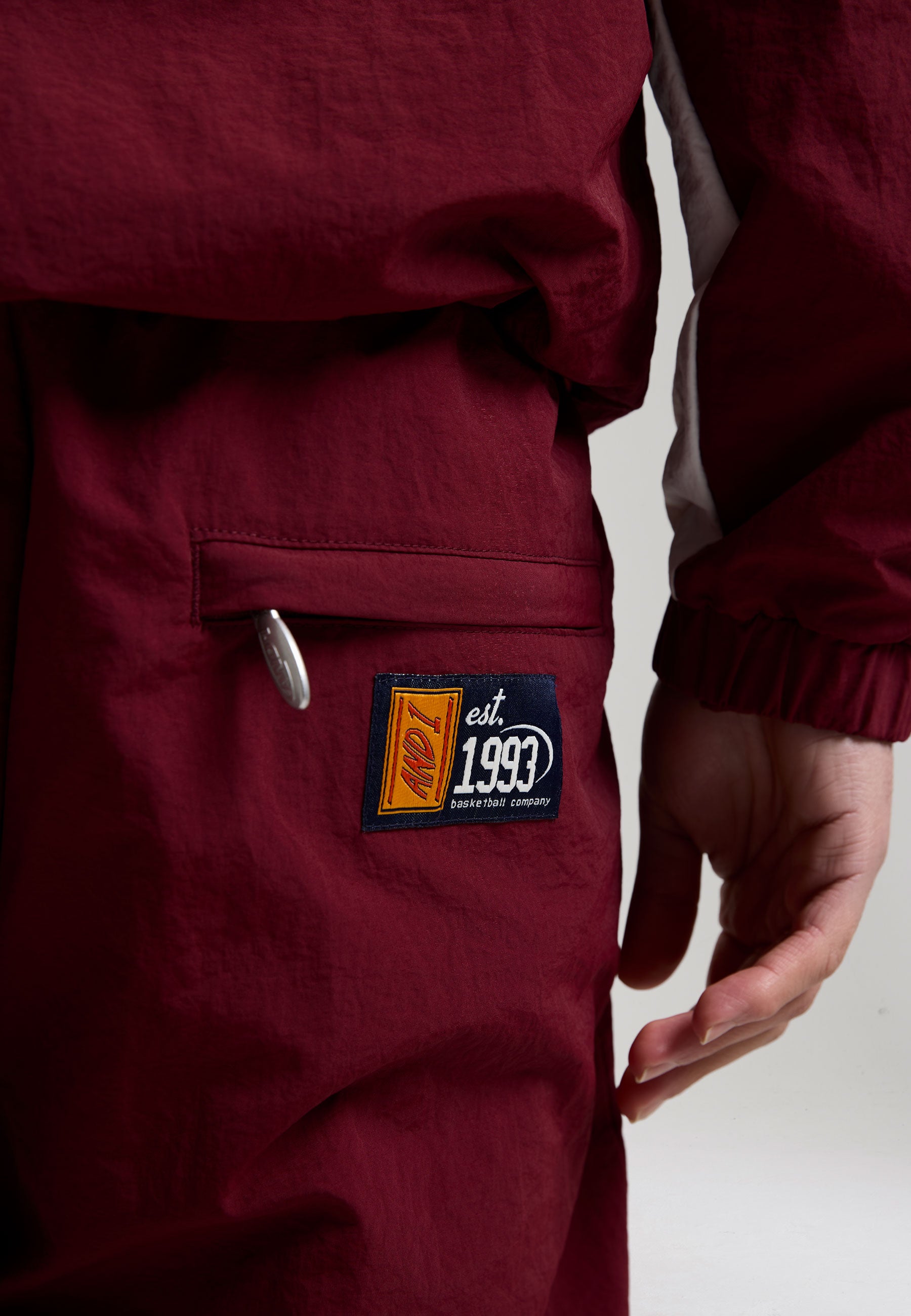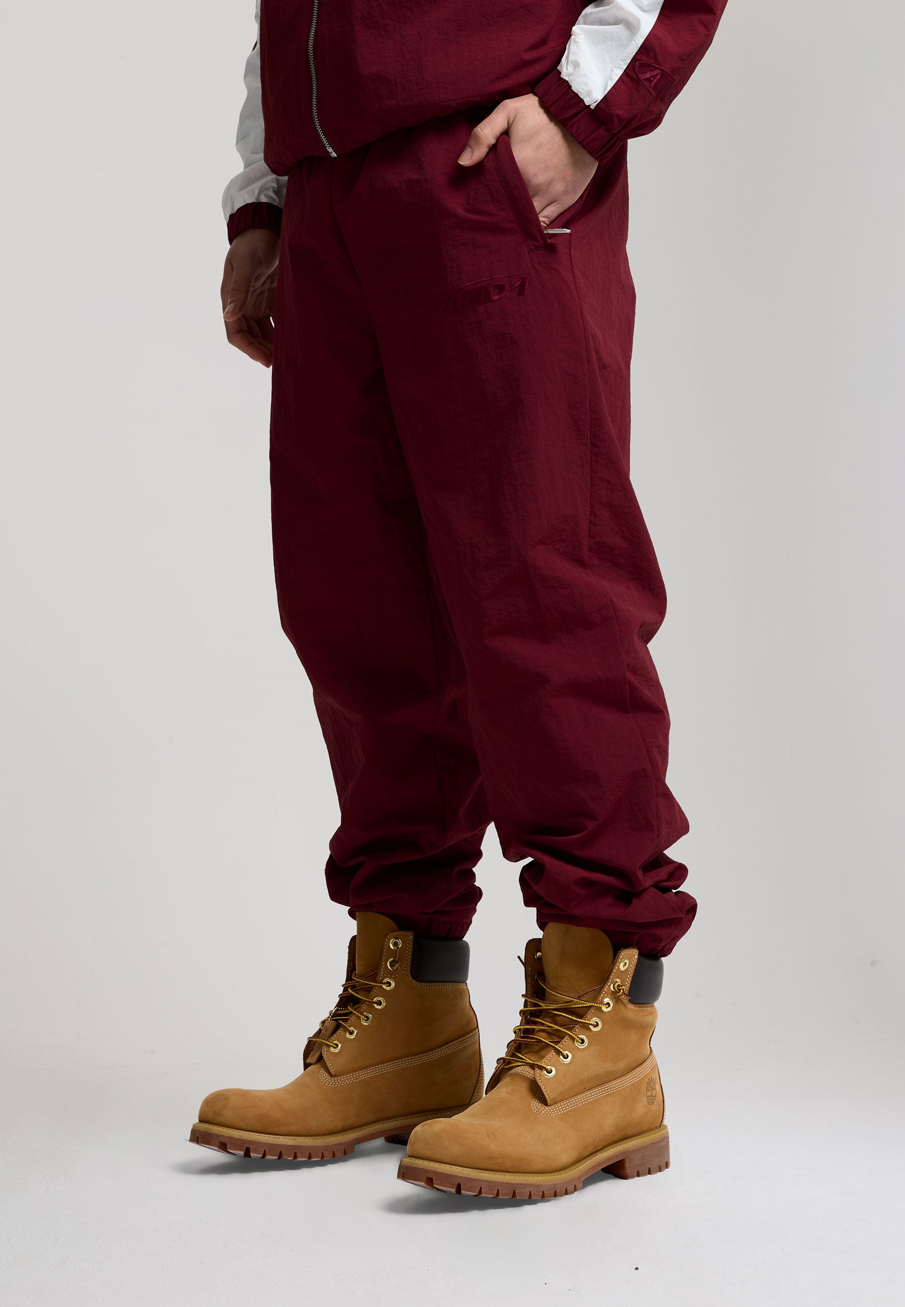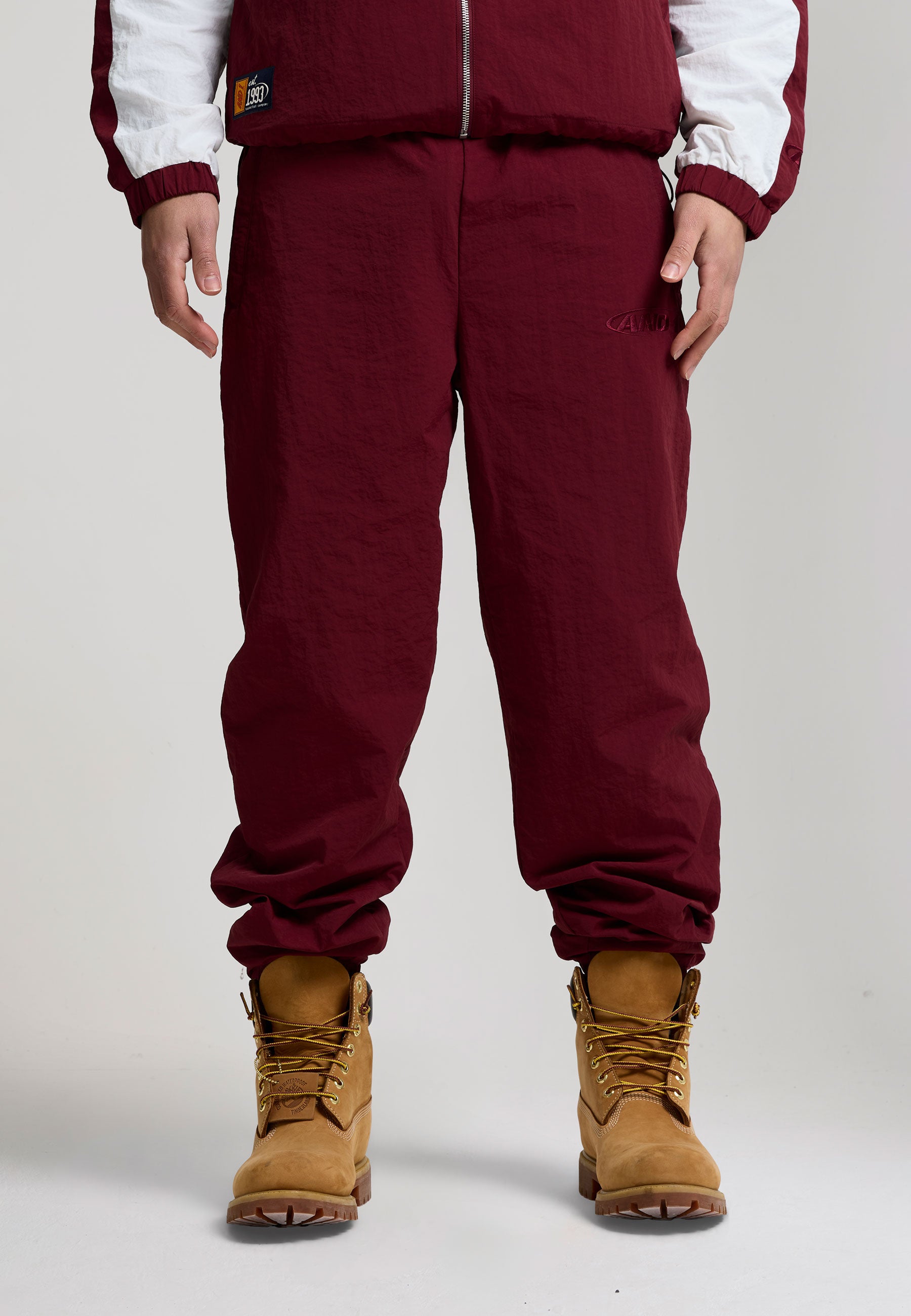 Mens Core Crinkle Nylon Track Pants - Burgundy