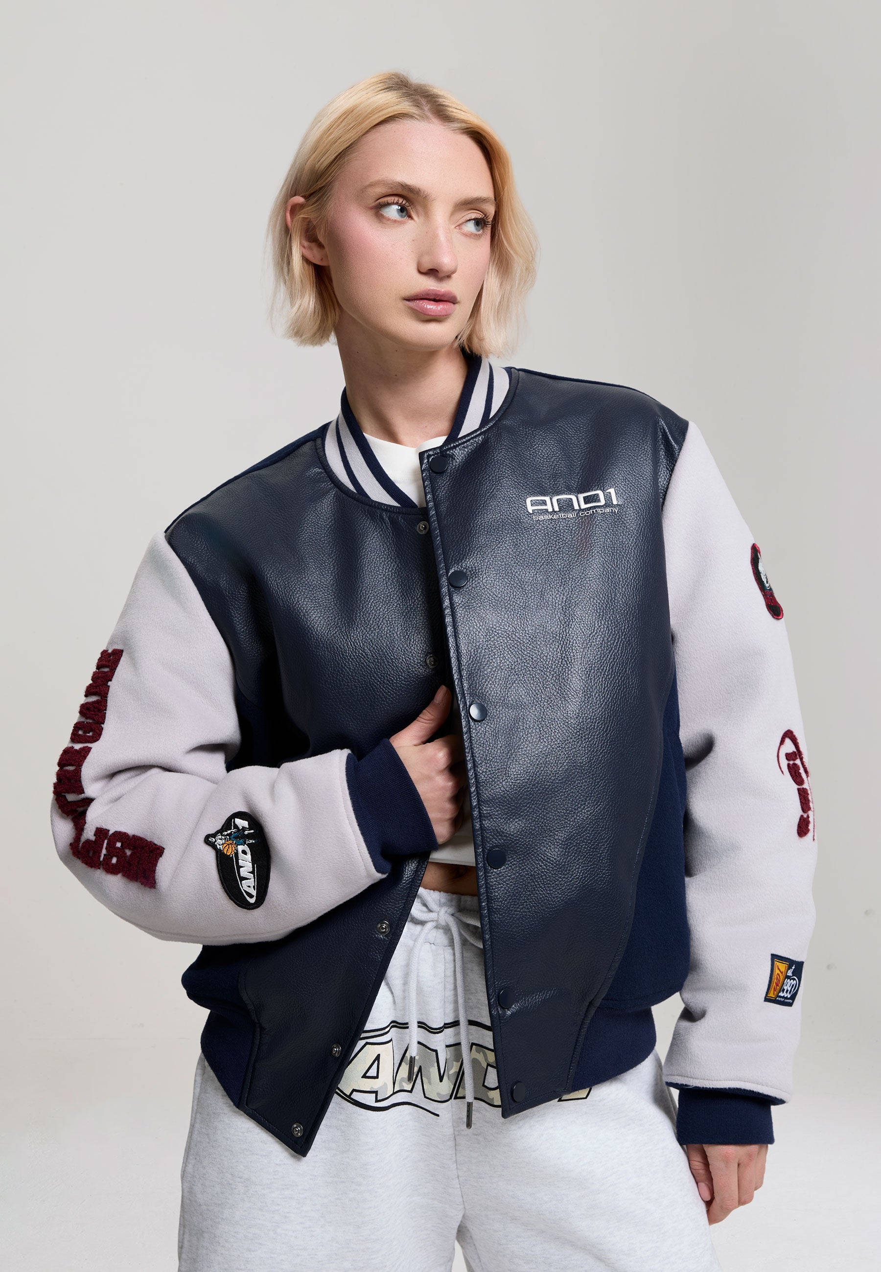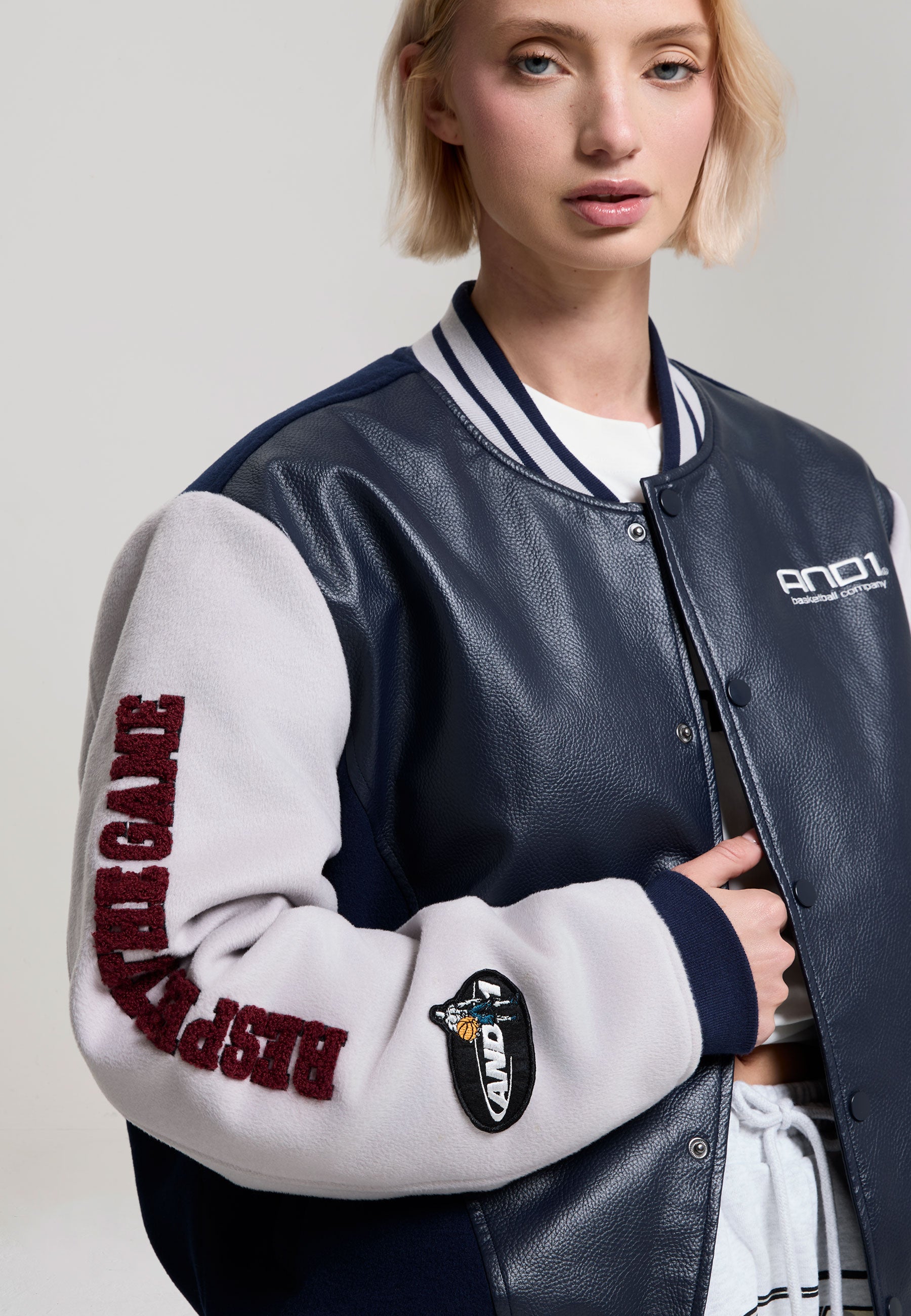 Womens Respect The Game Contrast Bomber Jacket - Navy