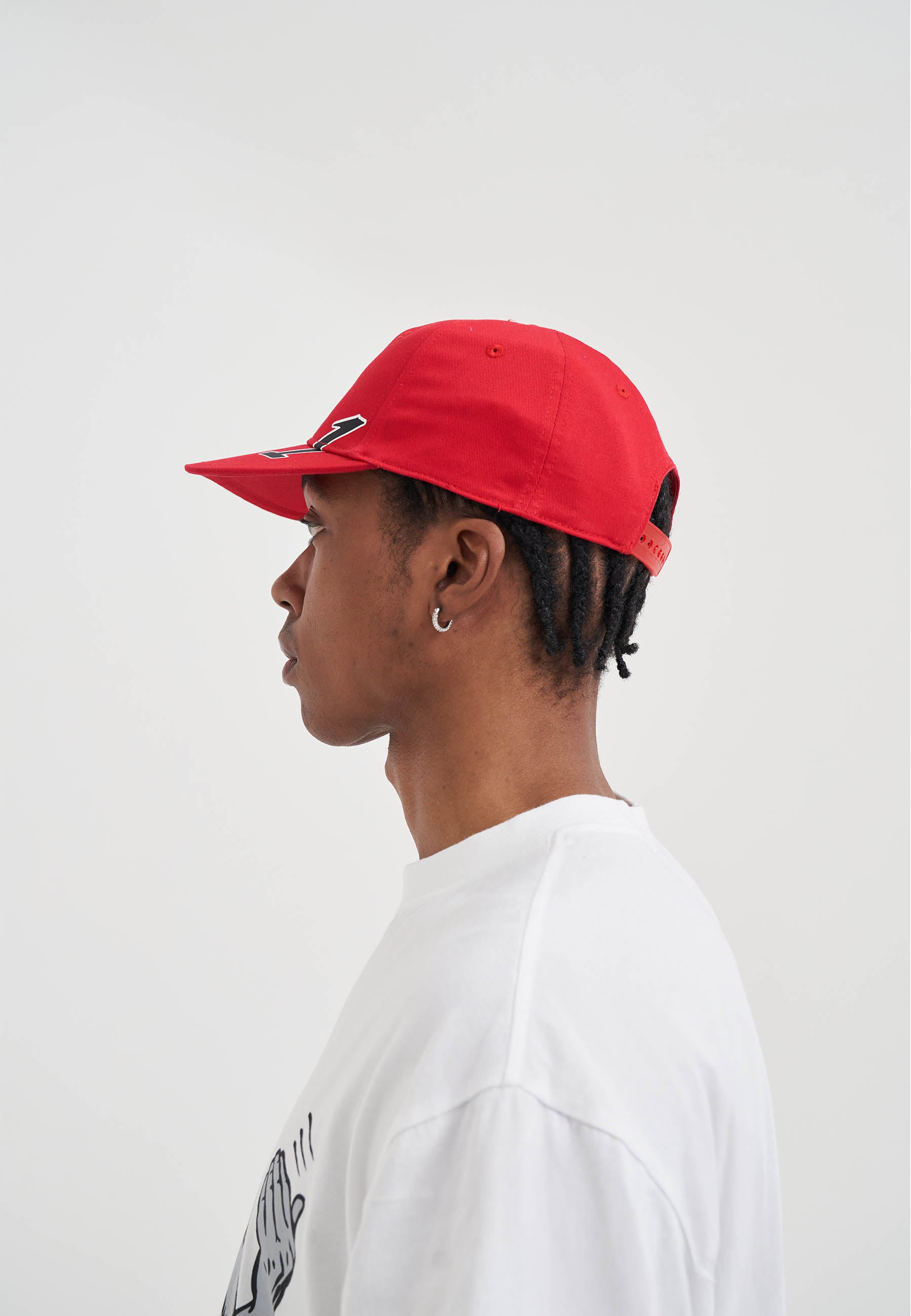 DEFENSE 5 PANEL FLAT PEAK CAP in Red