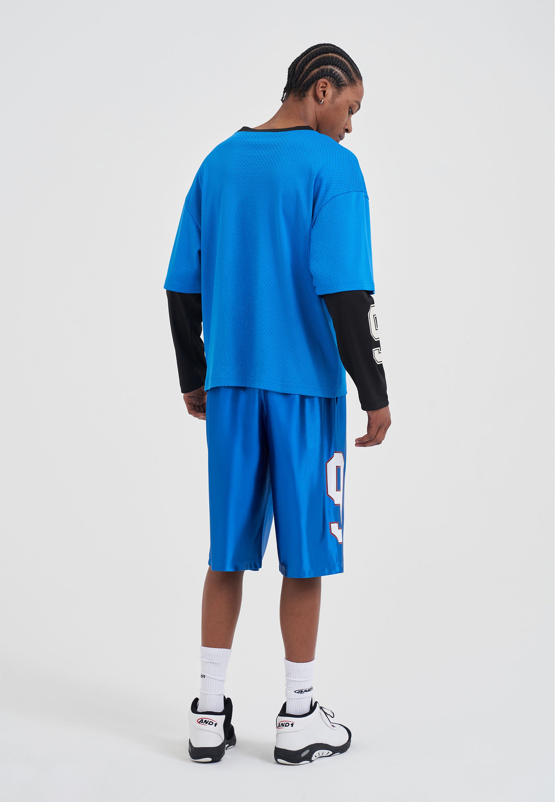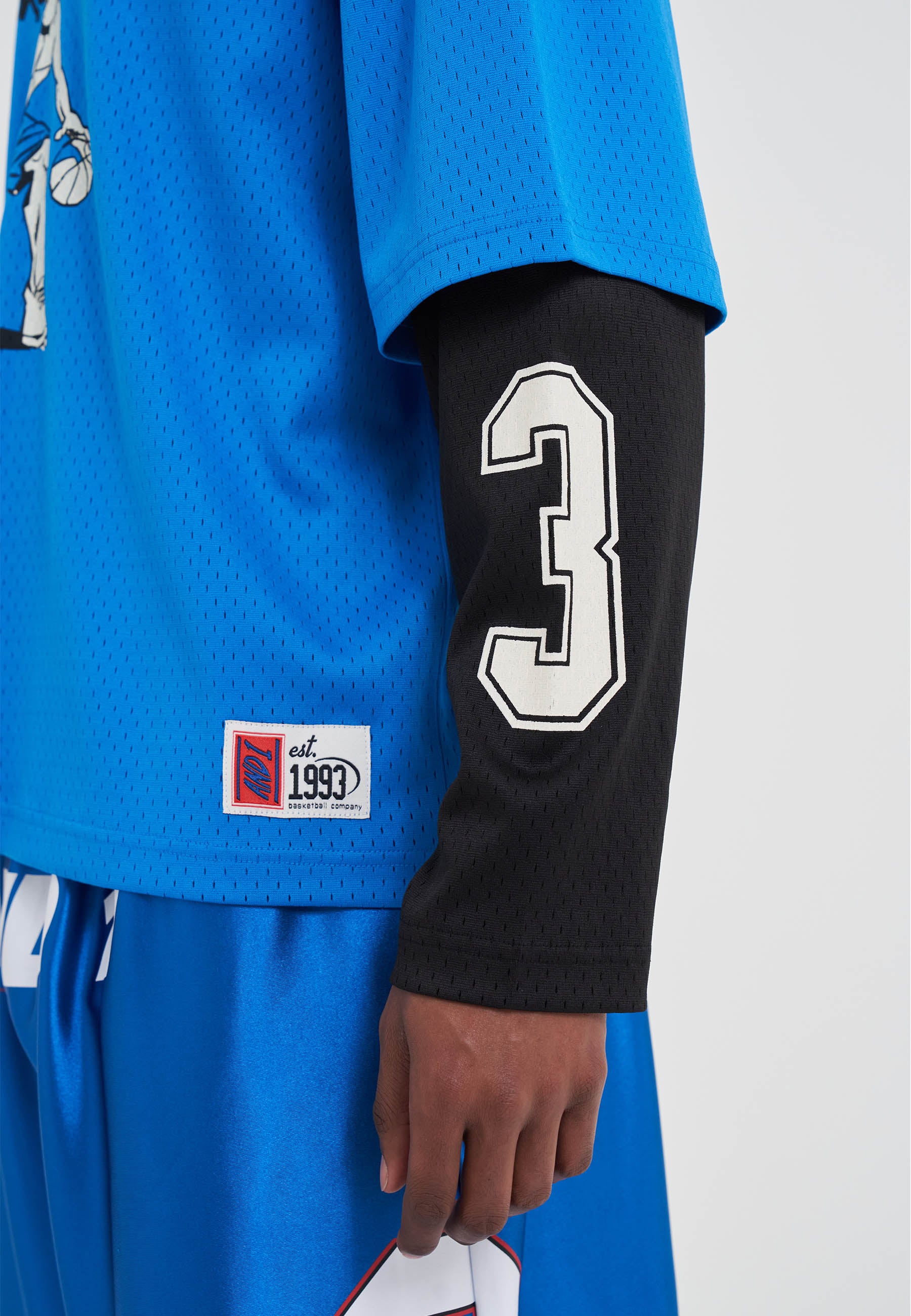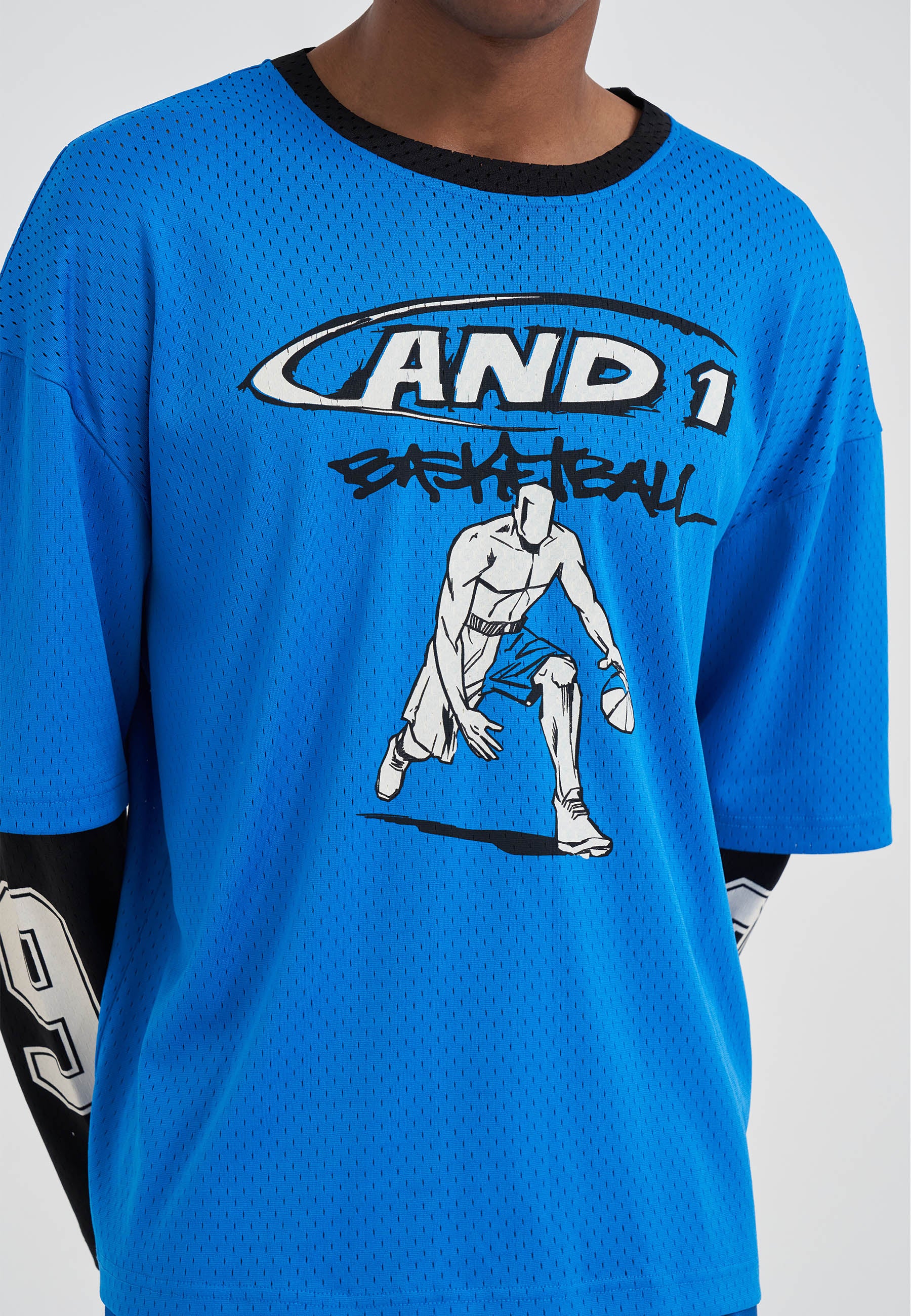 MENS DOUBLE LAYER MESH LONG SLEEVE T-SHIRT in Blue