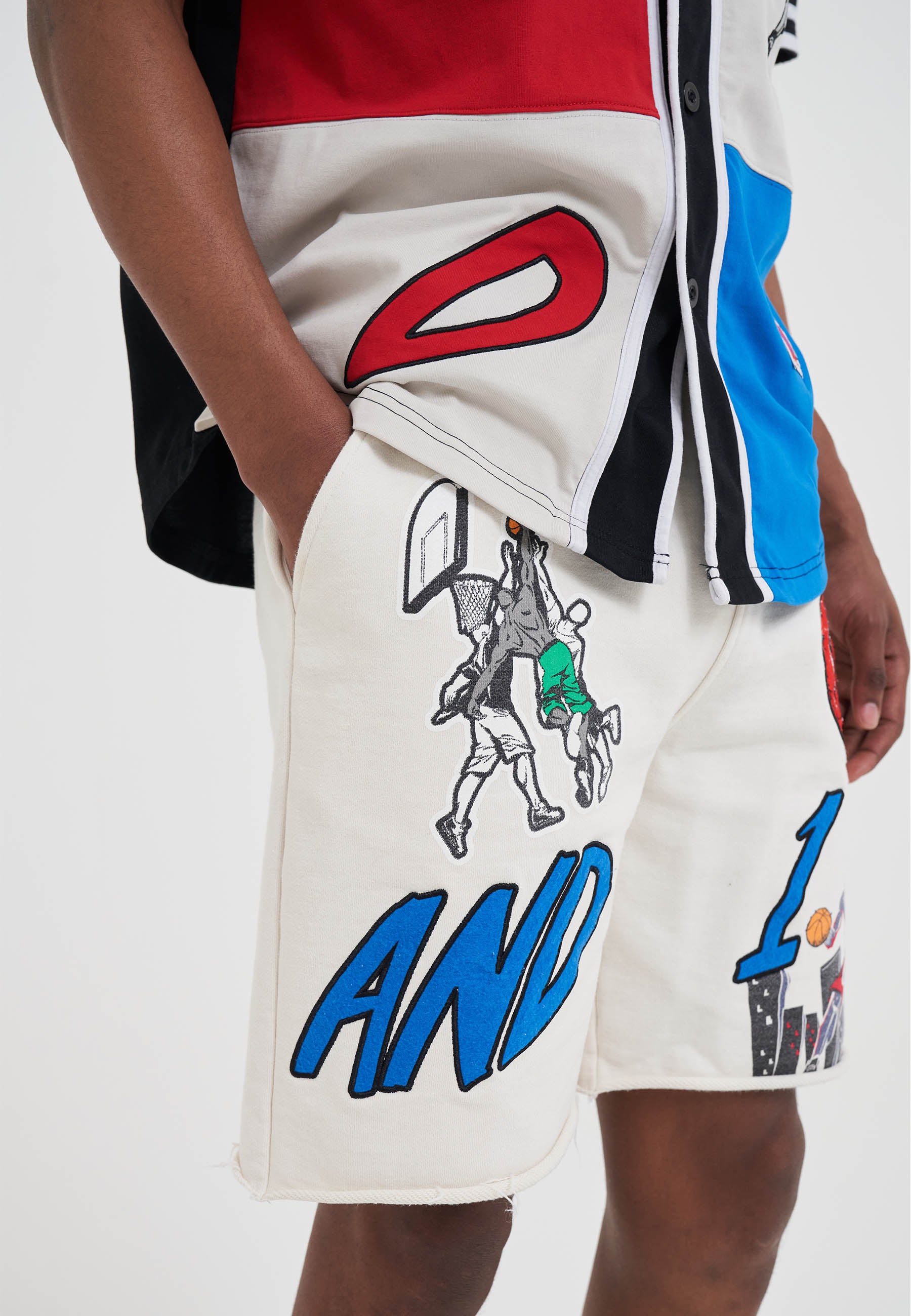 MENS MULTI APPLIQUE SHORTS in Ecru