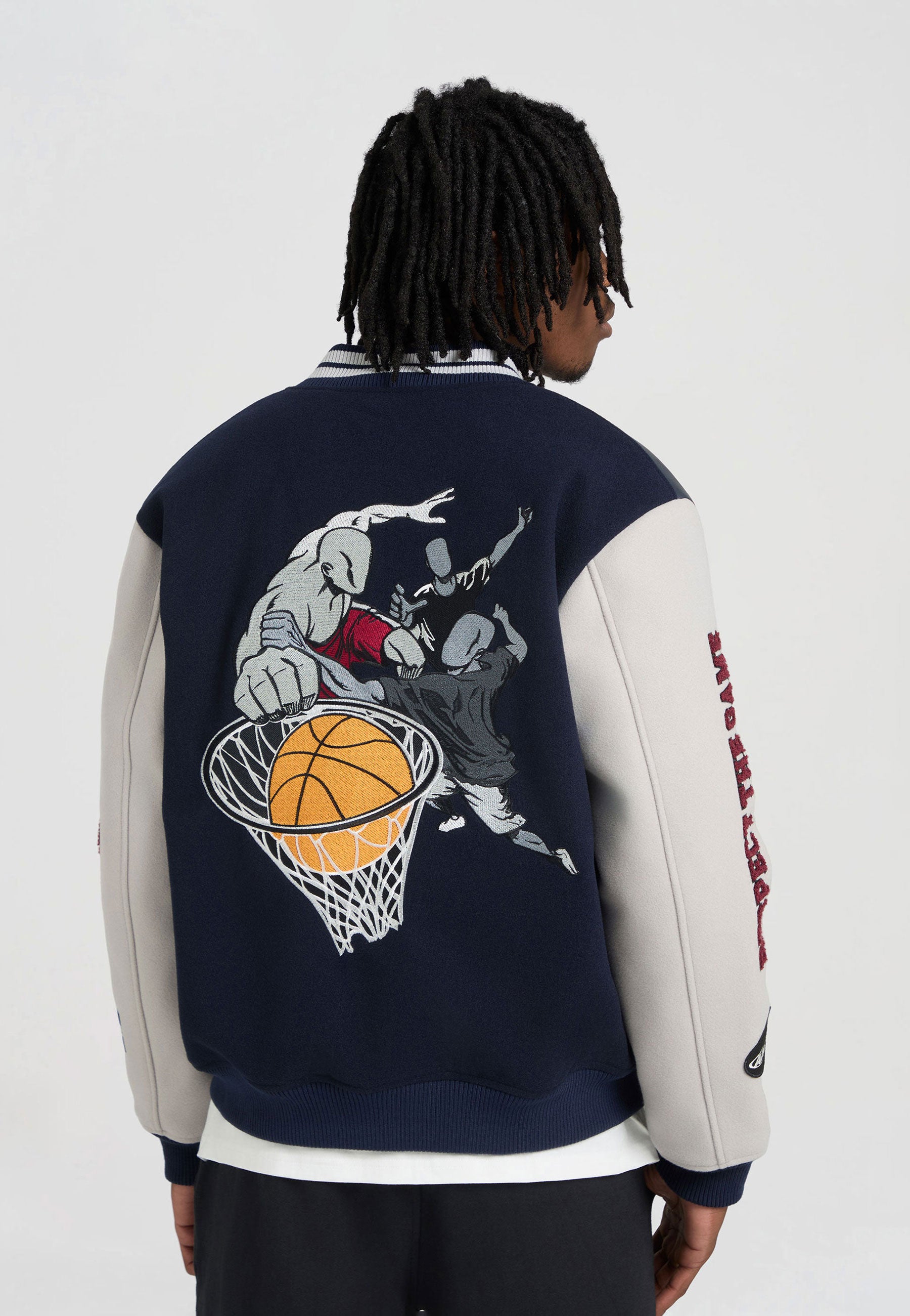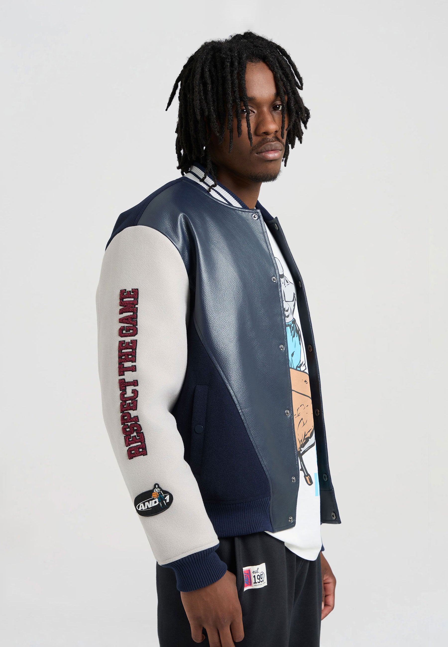MENS RESPECT THE GAME CONTRAST BOMBER JACKET in Navy