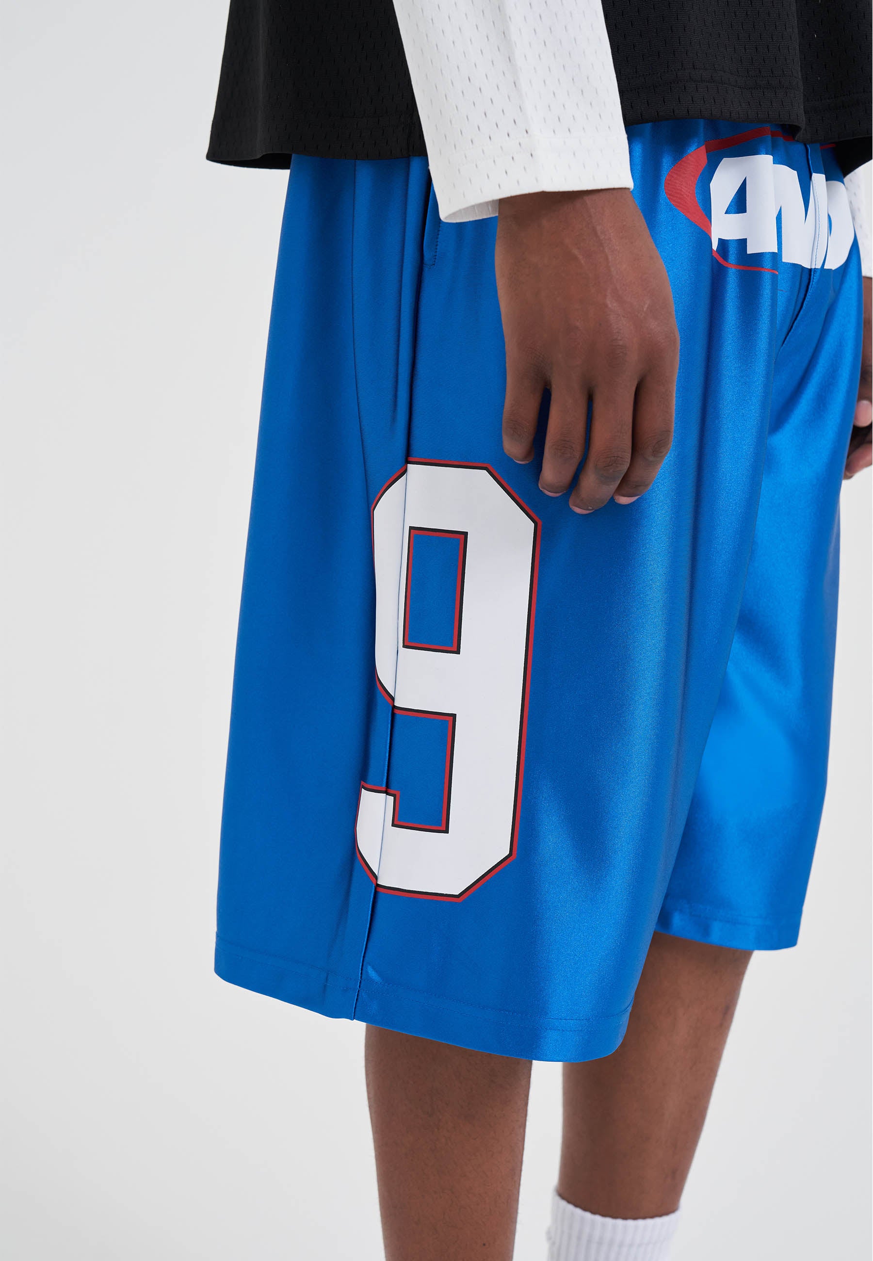 MENS SATIN SPORT GRAPHIC BASKETBALL SHORTS in Blue