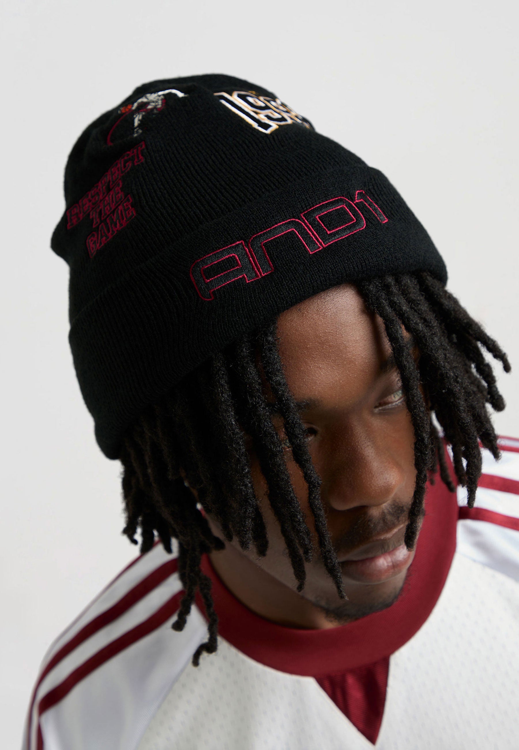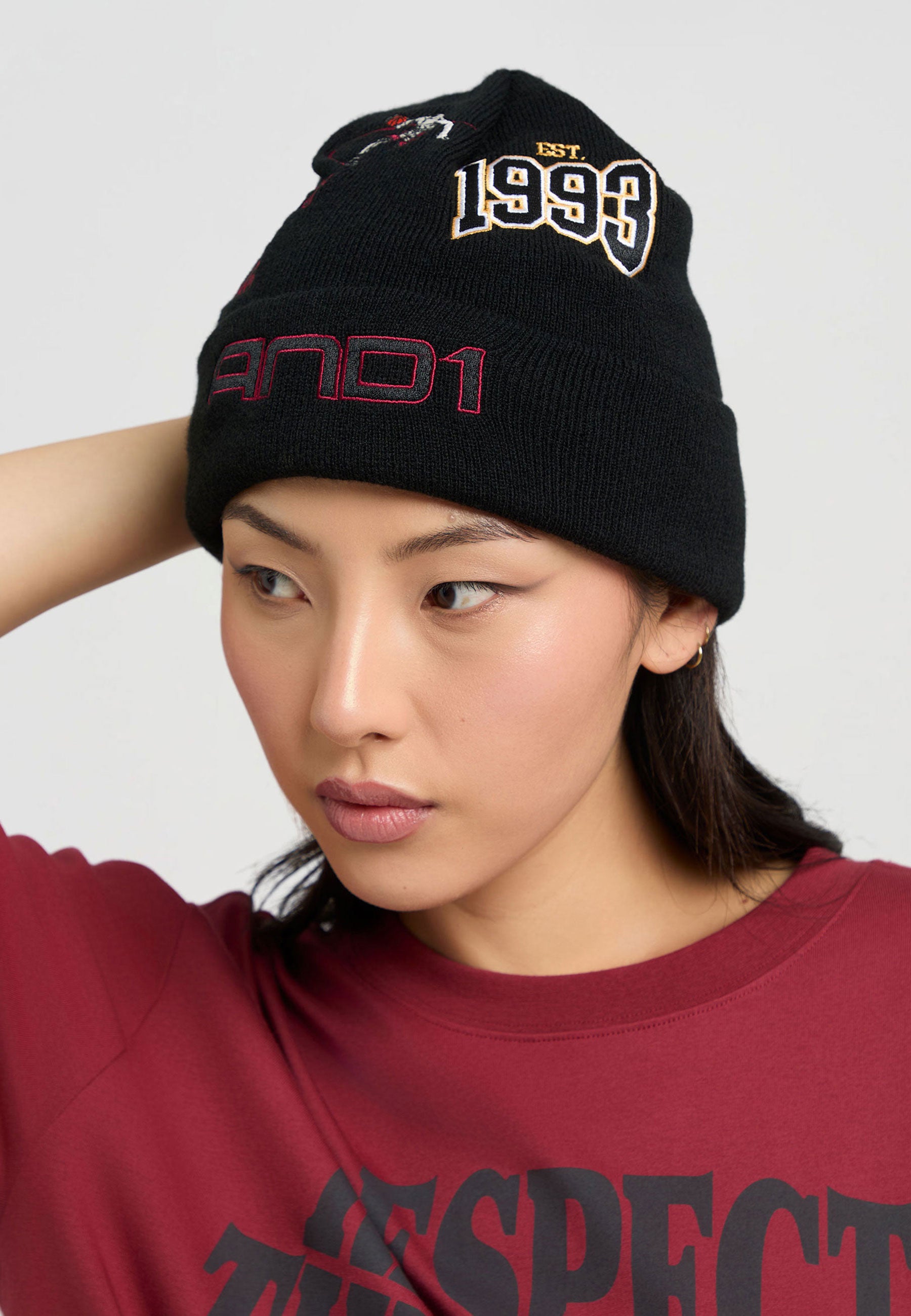 RETRO LOGO MULTI BADGE BEANIE HAT in Black