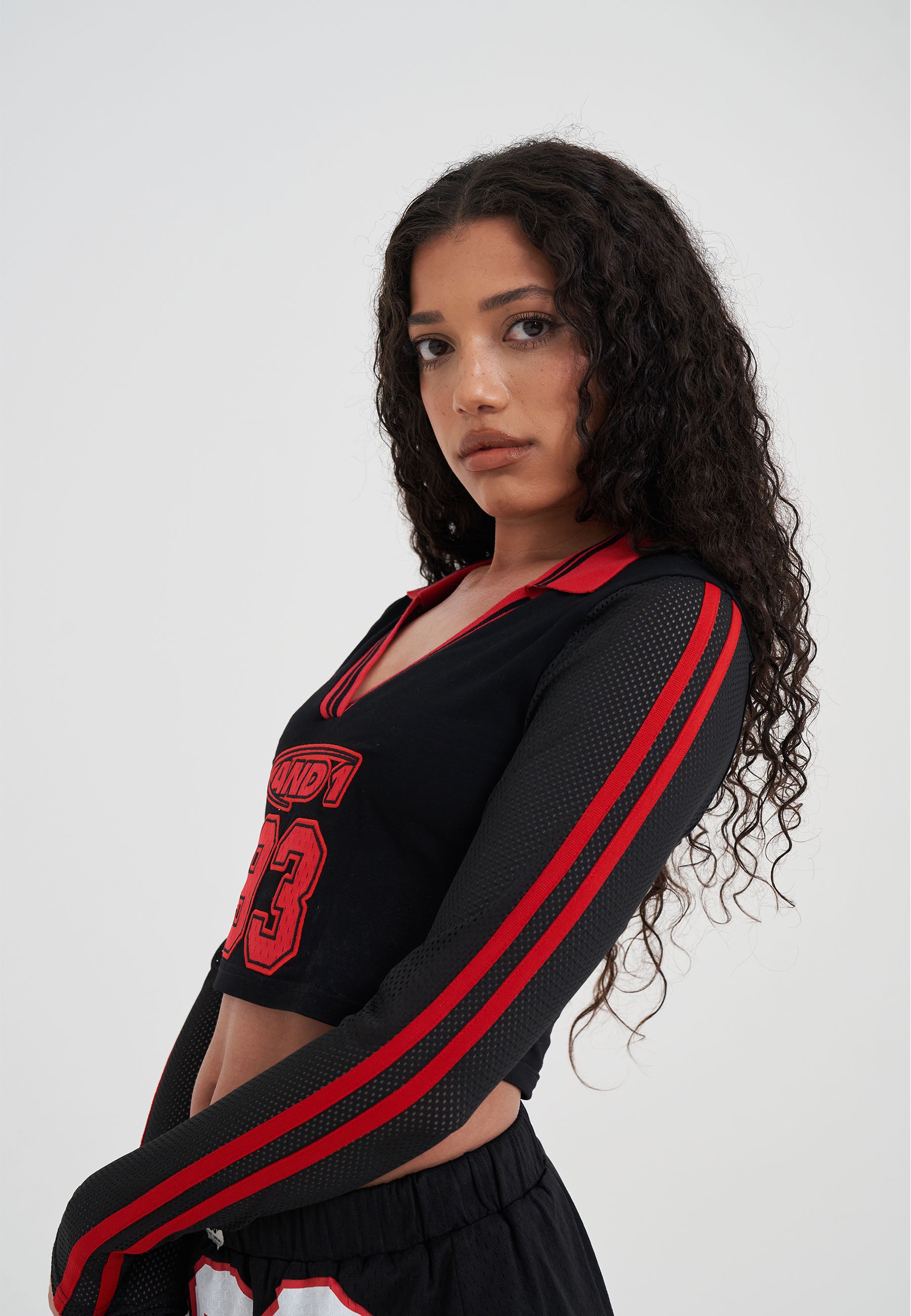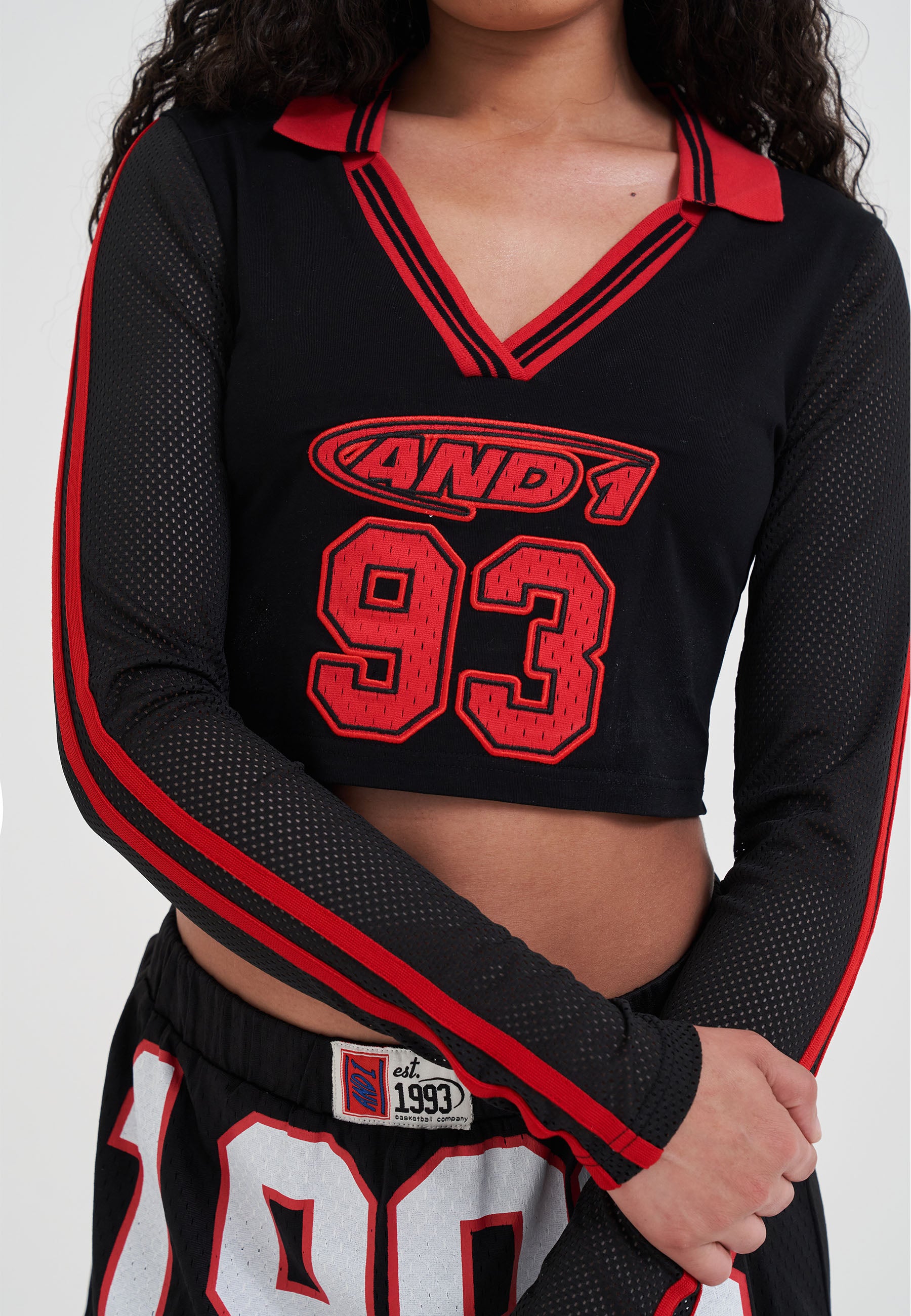 WOMENS 93 AIRTEX V NECK LONG SLEEVE TOP in Black/Red.
