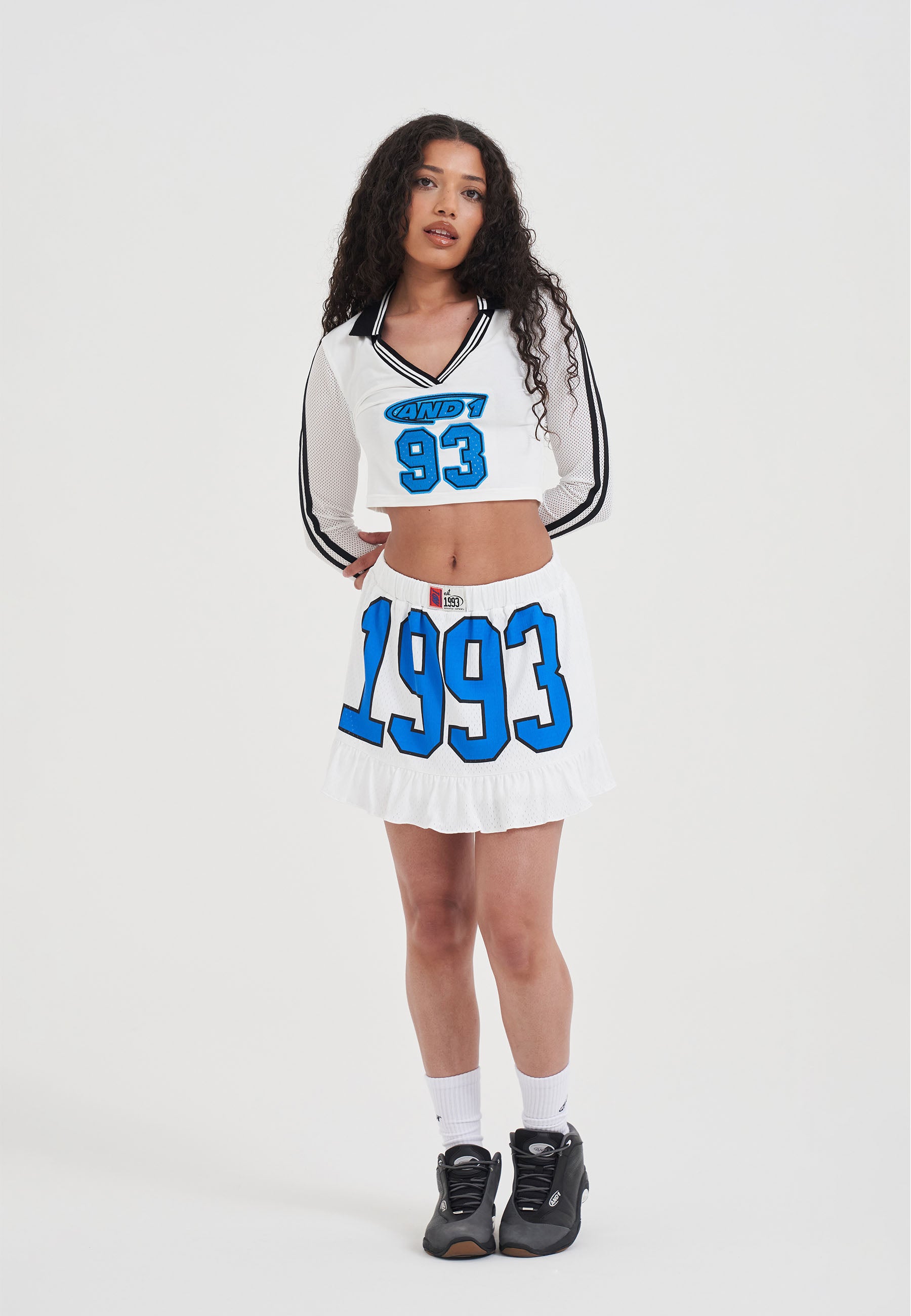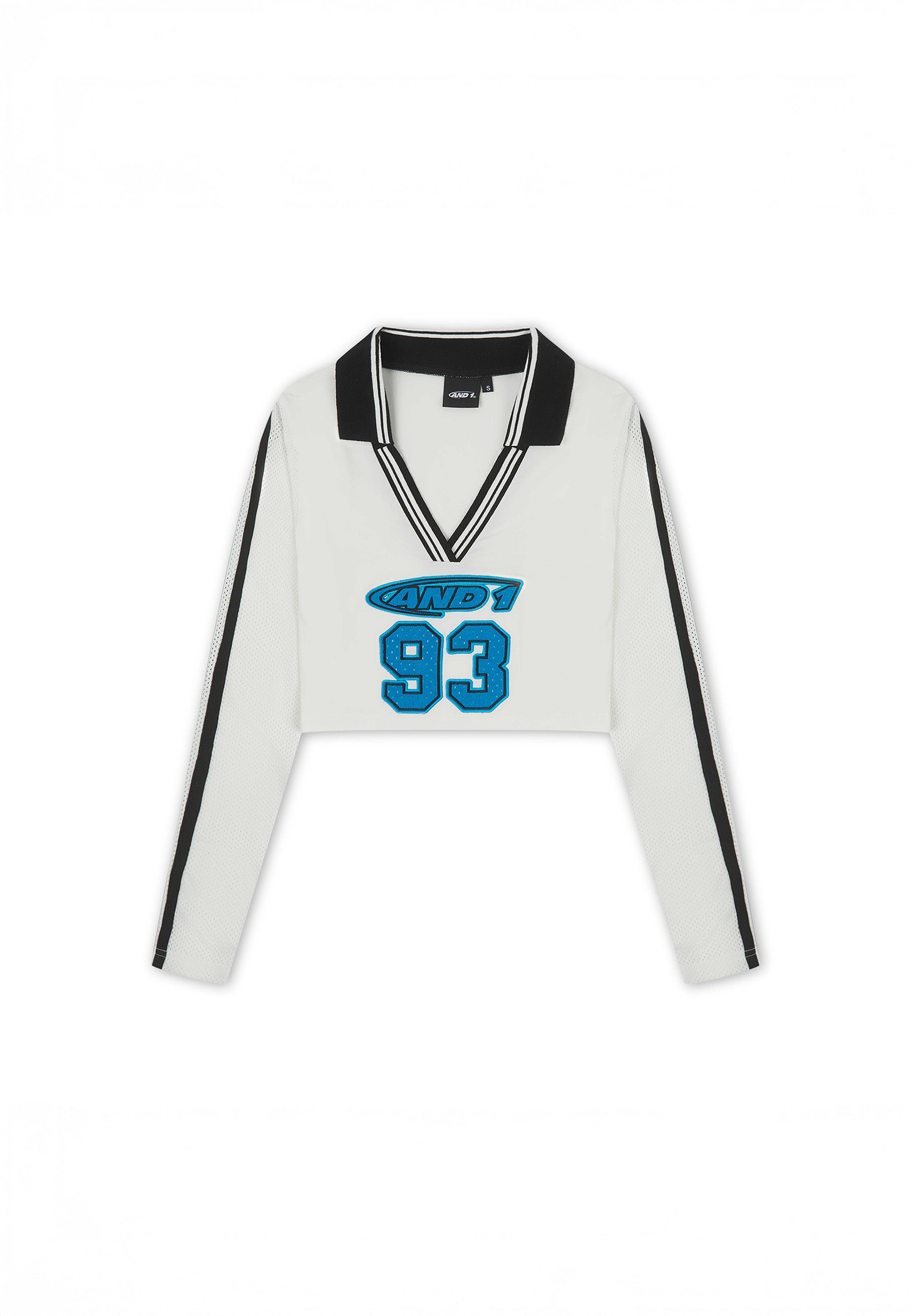 WOMENS 93 AIRTEX V NECK LONG SLEEVE TOP in White/Blue.