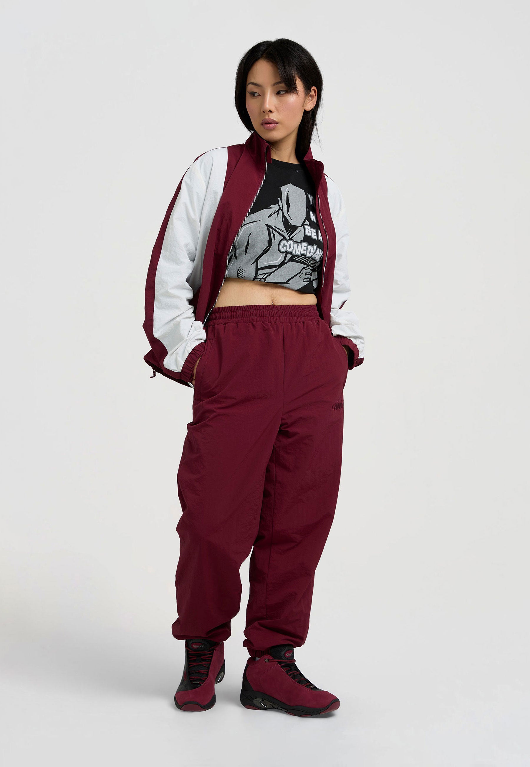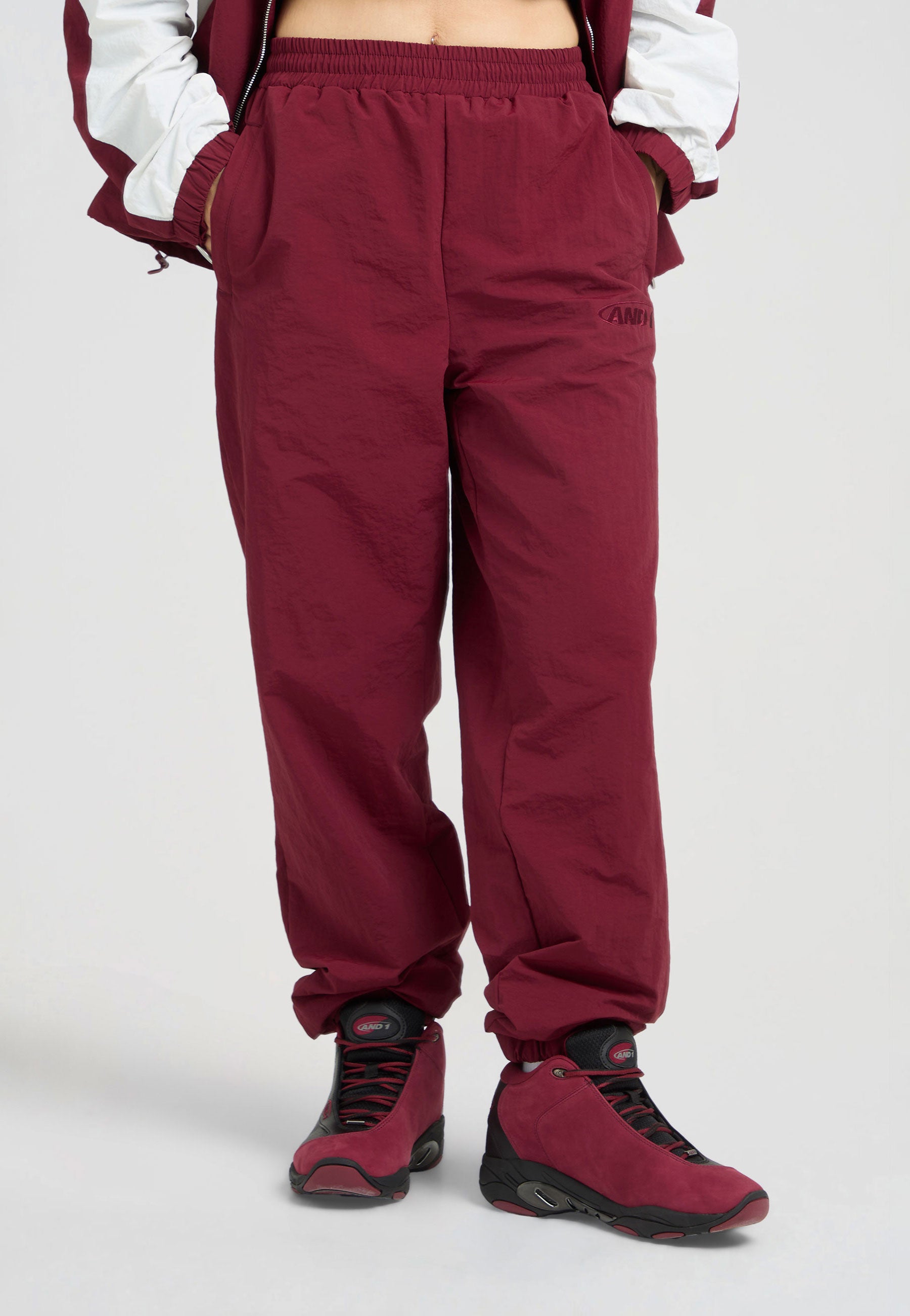 WOMENS CORE CRINKLE NYLON TRACK PANTS in Burgundy