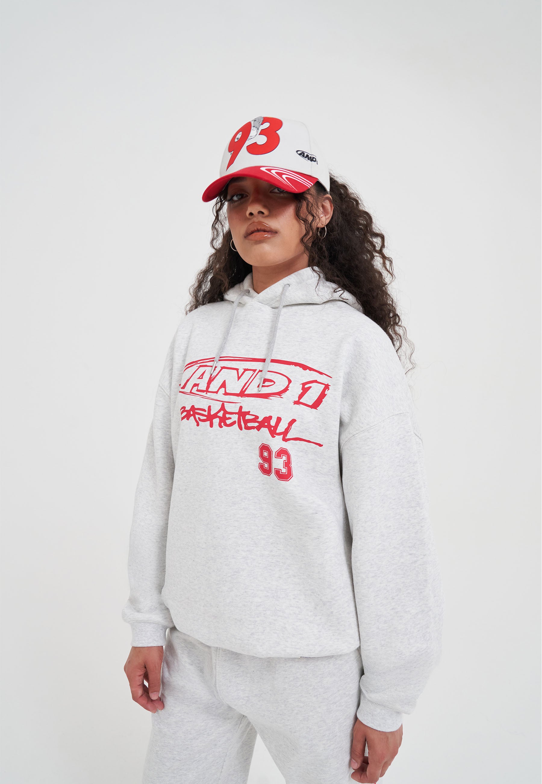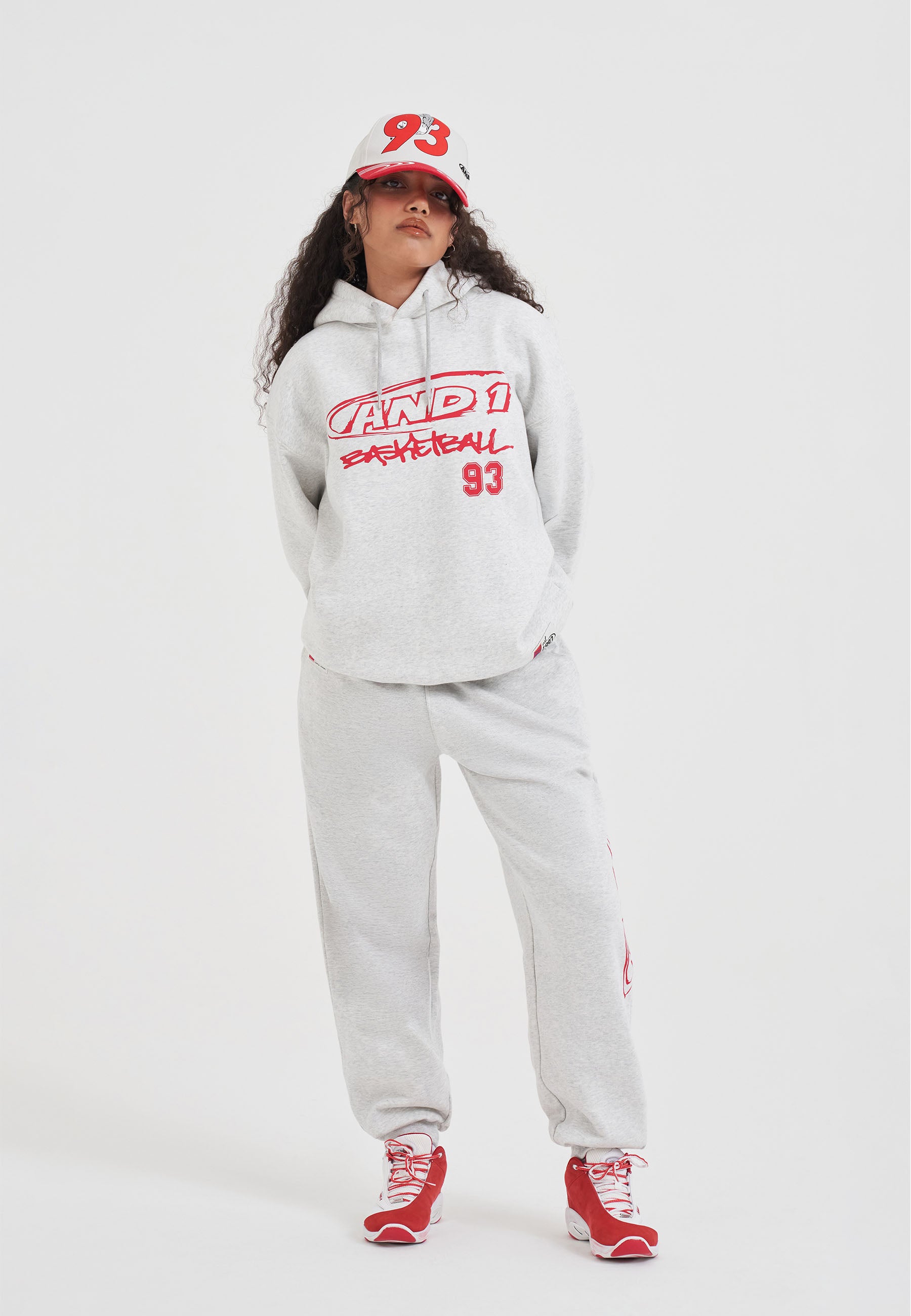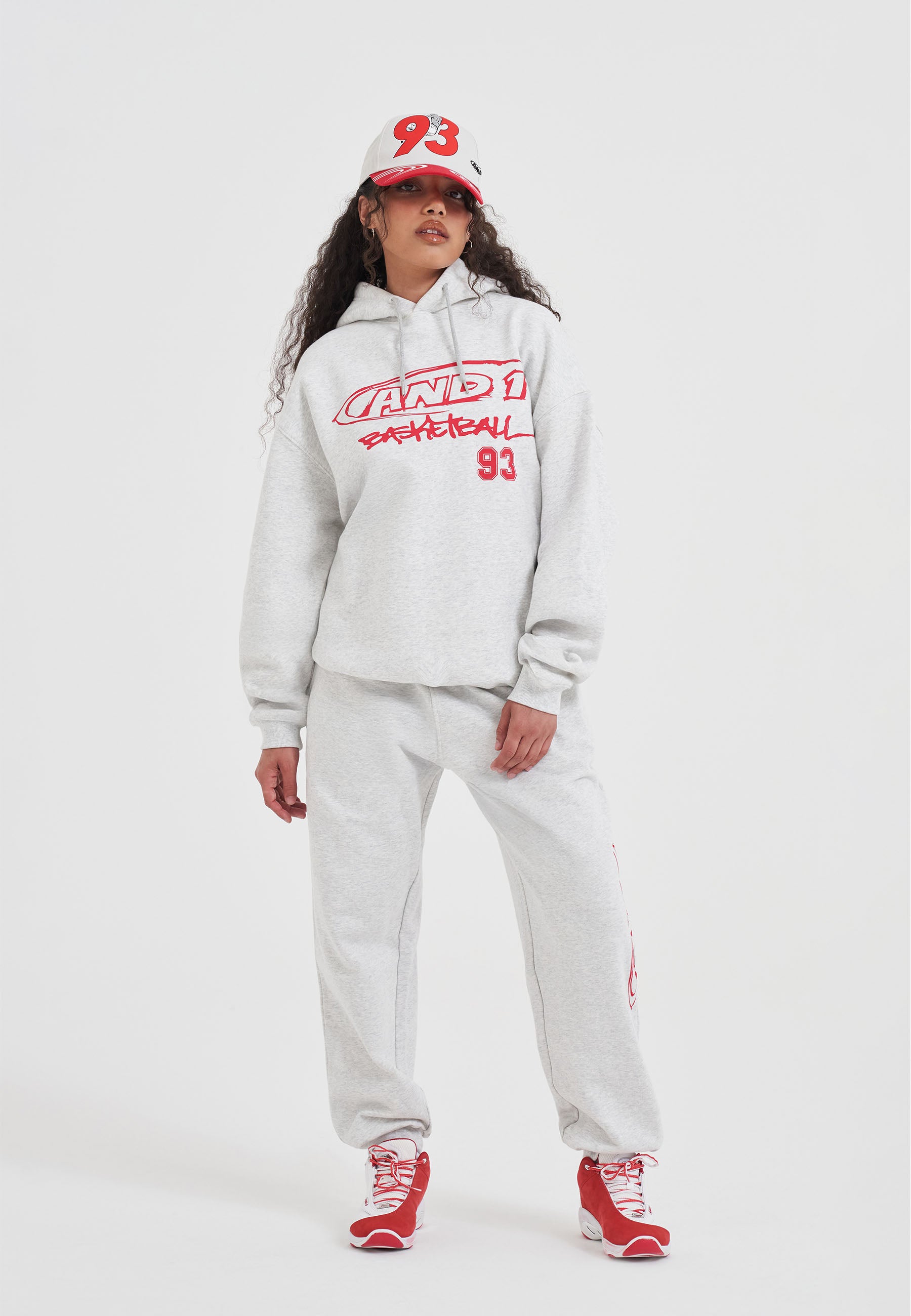 WOMENS CORE GRAFFITI LOGO HOODIE in Grey/Red.
