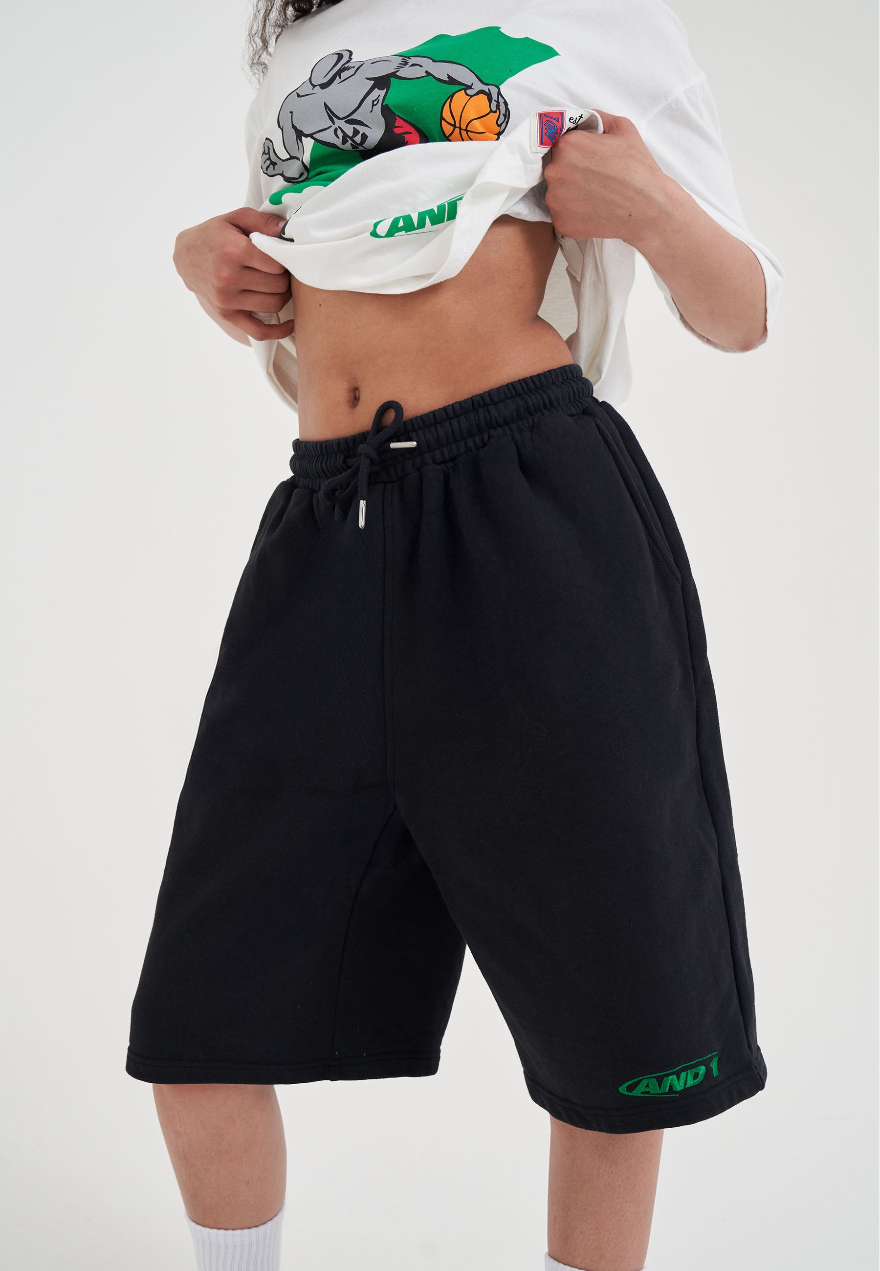 WOMENS CORE LOGO JERSEY BASKETBALL SHORTS in Black.