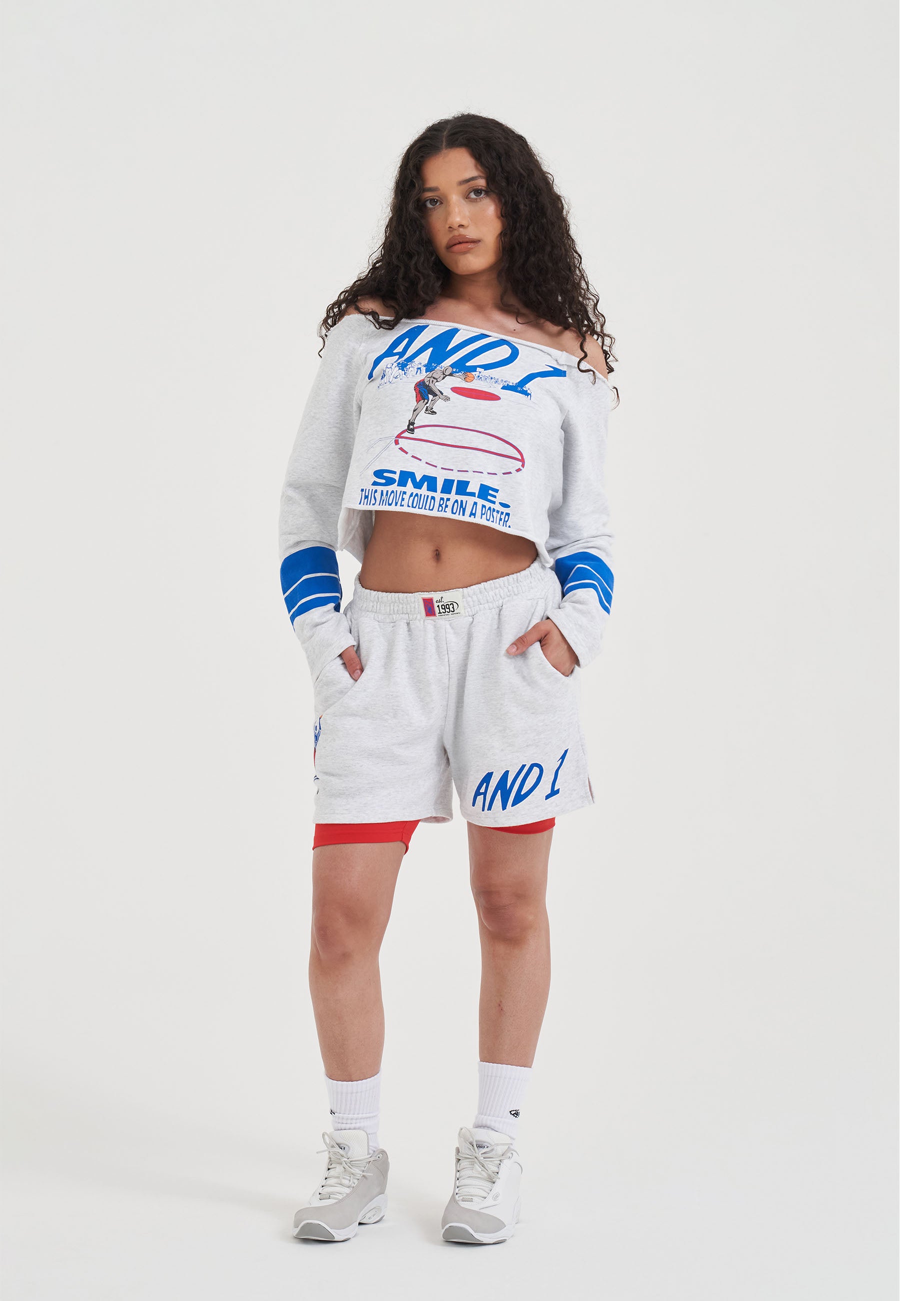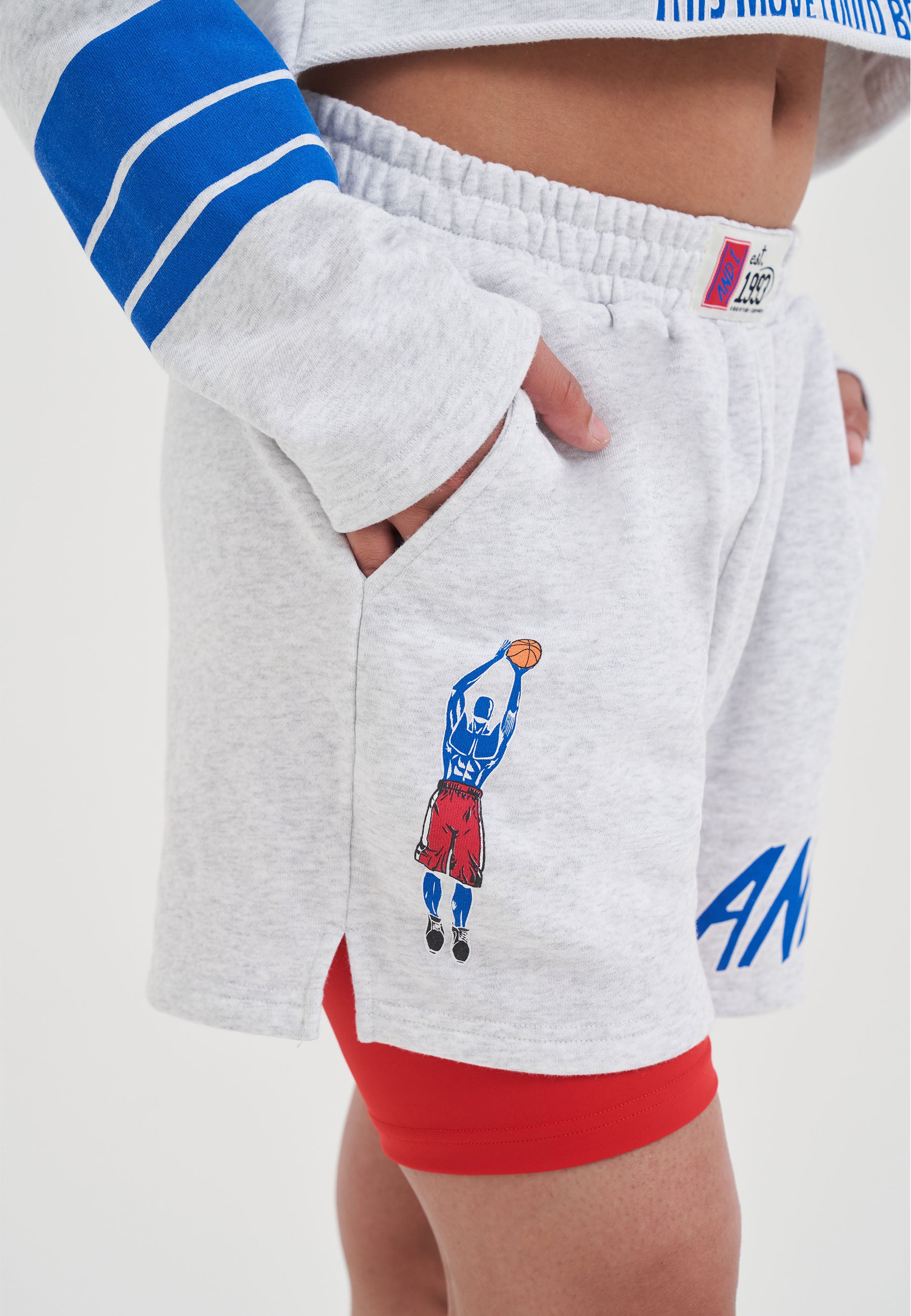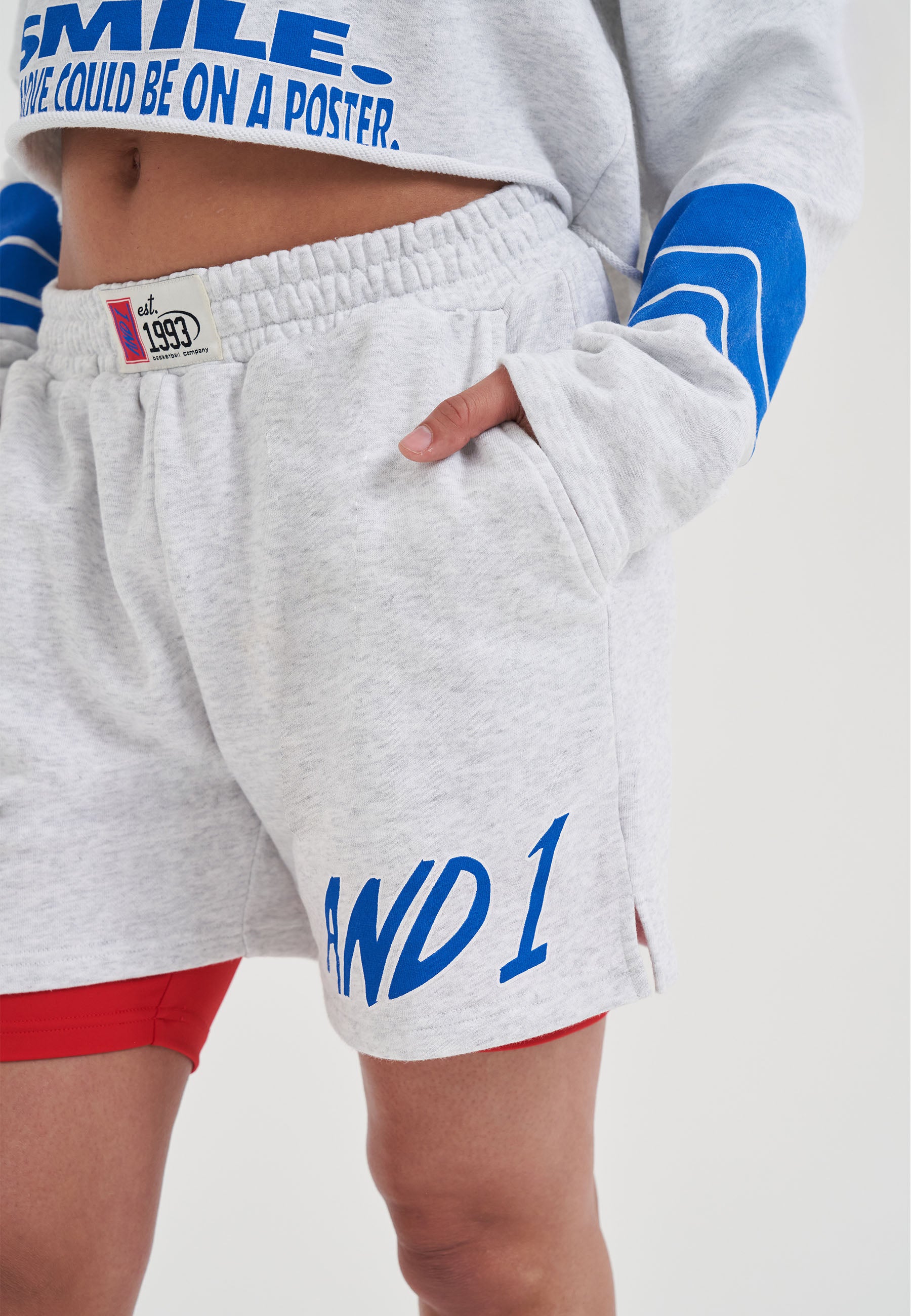 WOMENS DOUBLE LAYER DUNK SHORTS in Frost Marl/Red