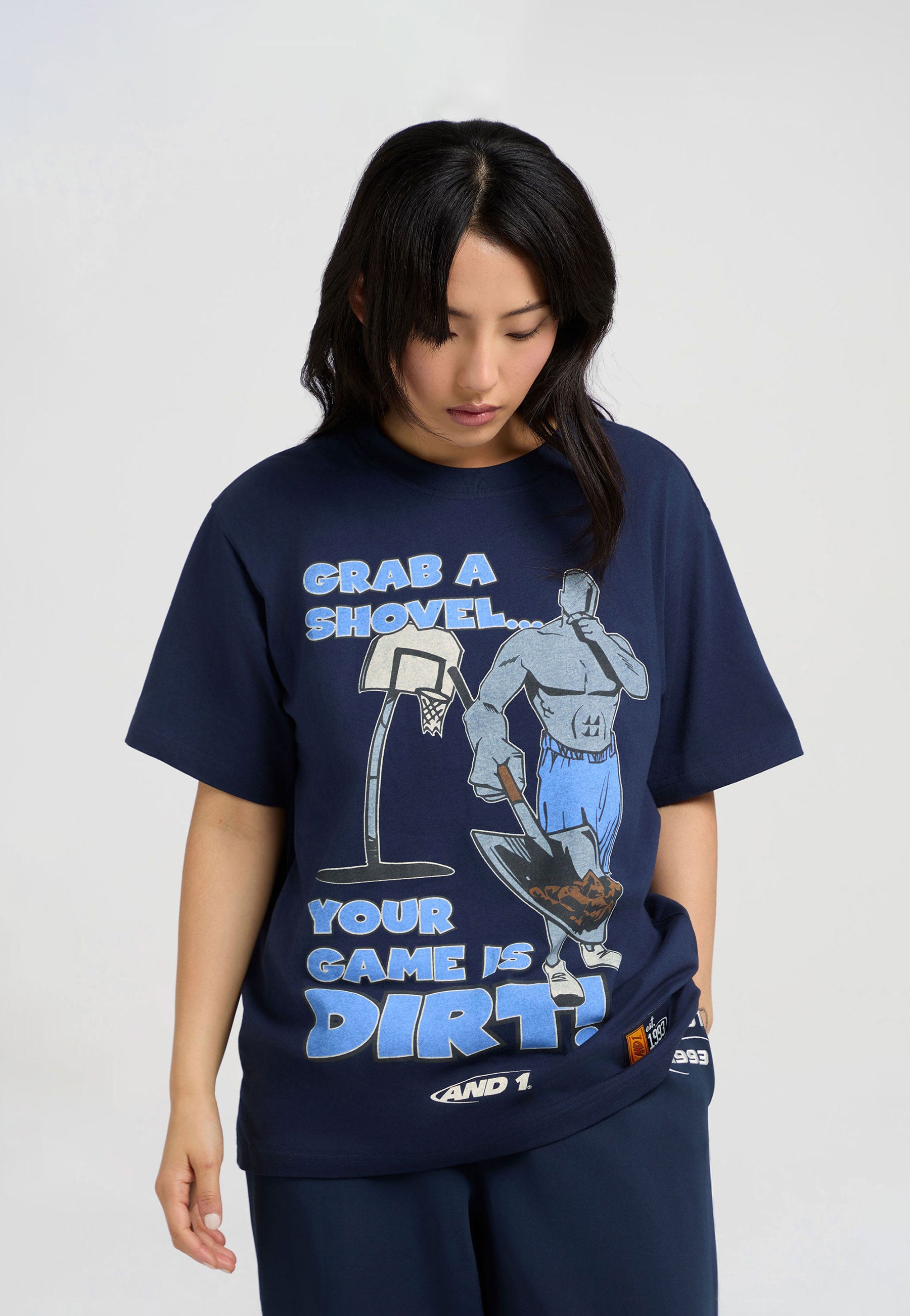 WOMENS GRAB A SHOVEL TRASH TALK T-SHIRT in Navy