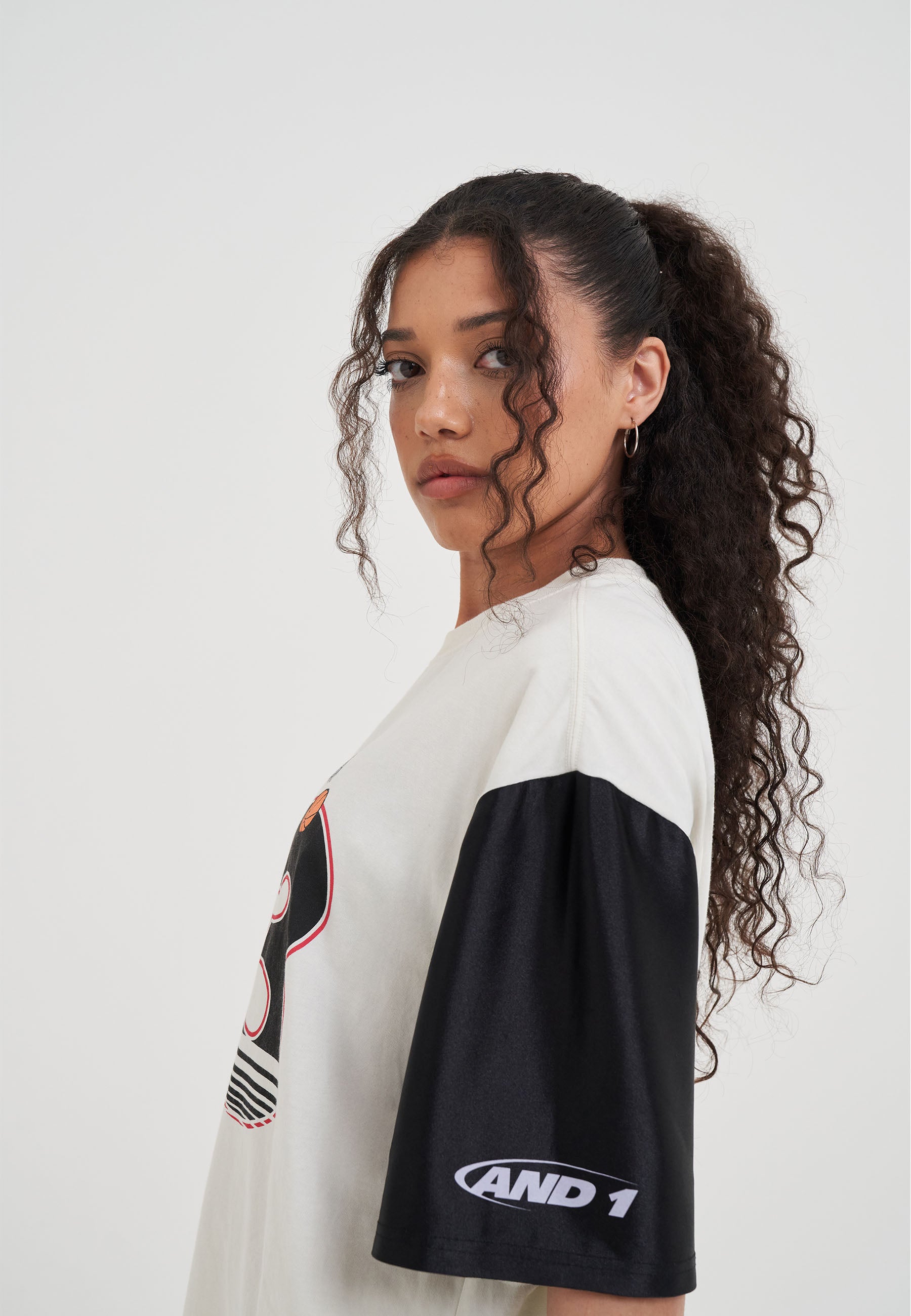 WOMENS JERSEY STYLE COLOURBLOCK T-SHIRT in Ecru/Black
