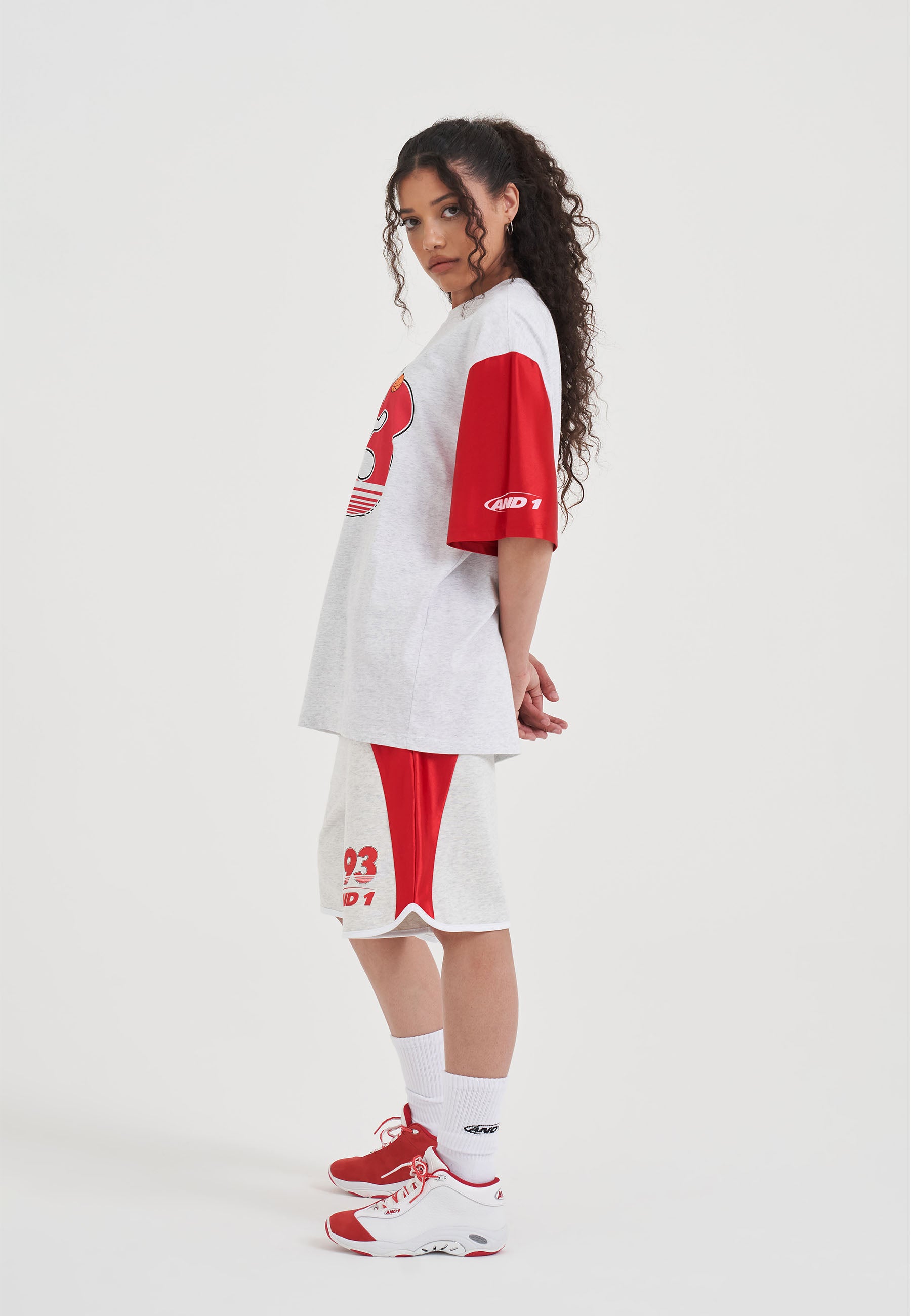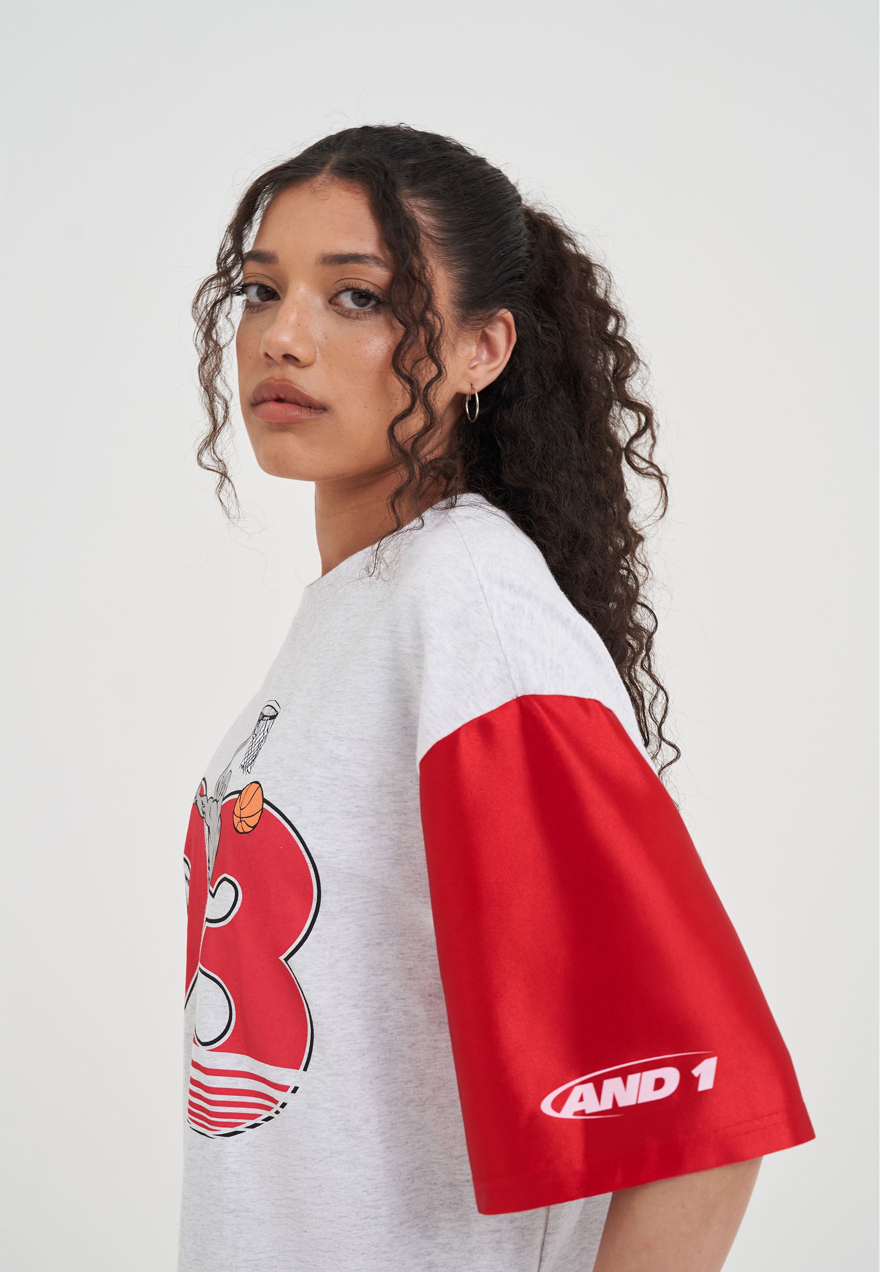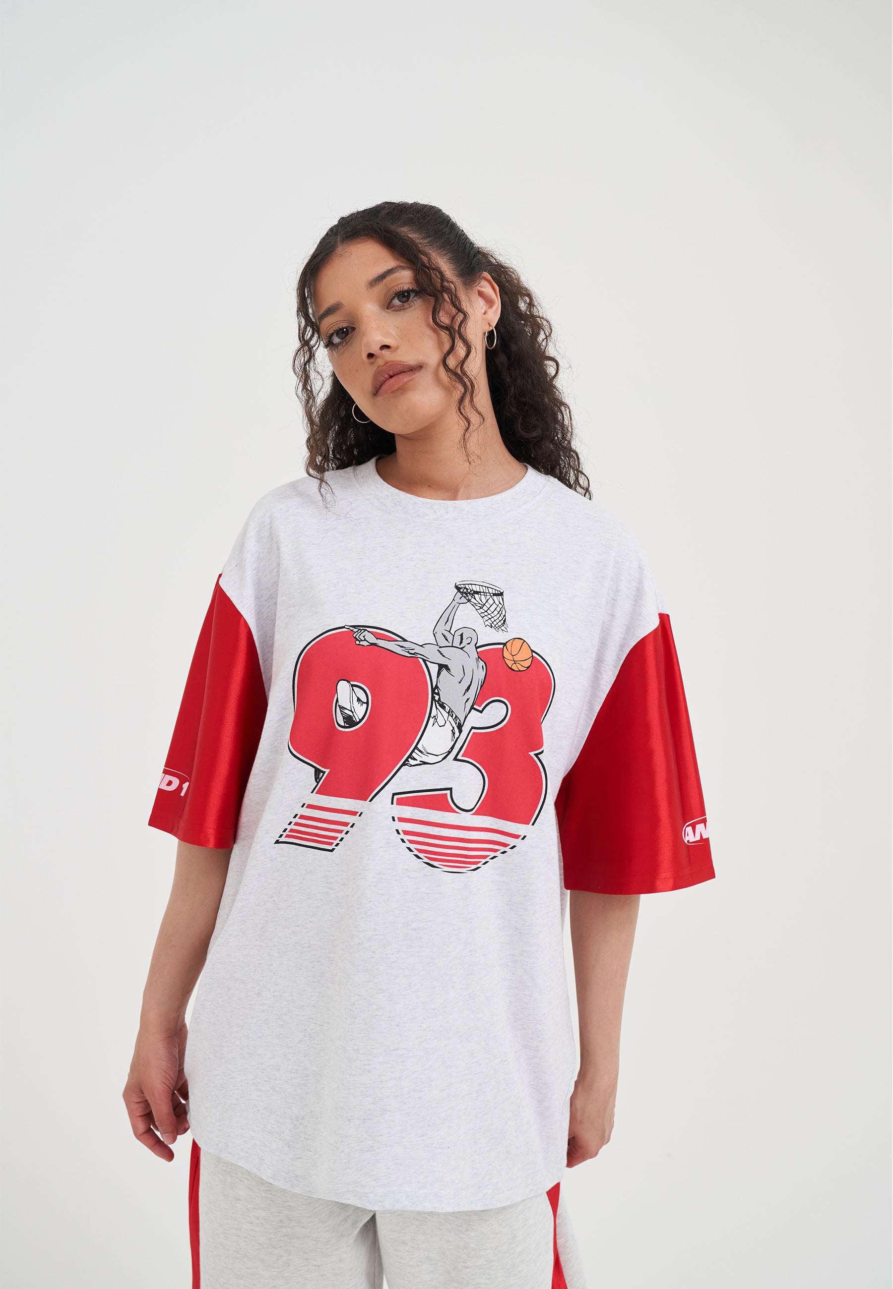 WOMENS JERSEY STYLE COLOURBLOCK T-SHIRT in Frost Marl/Red