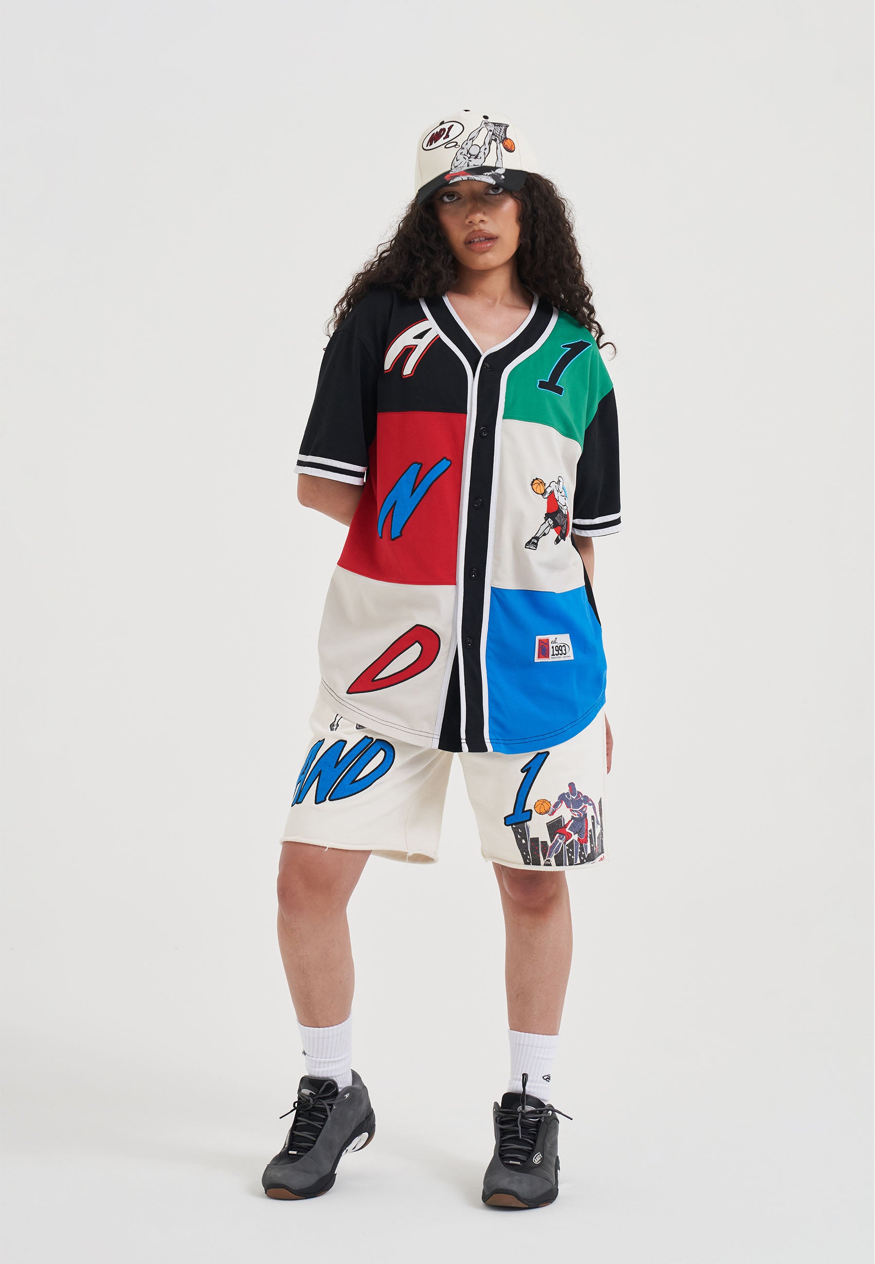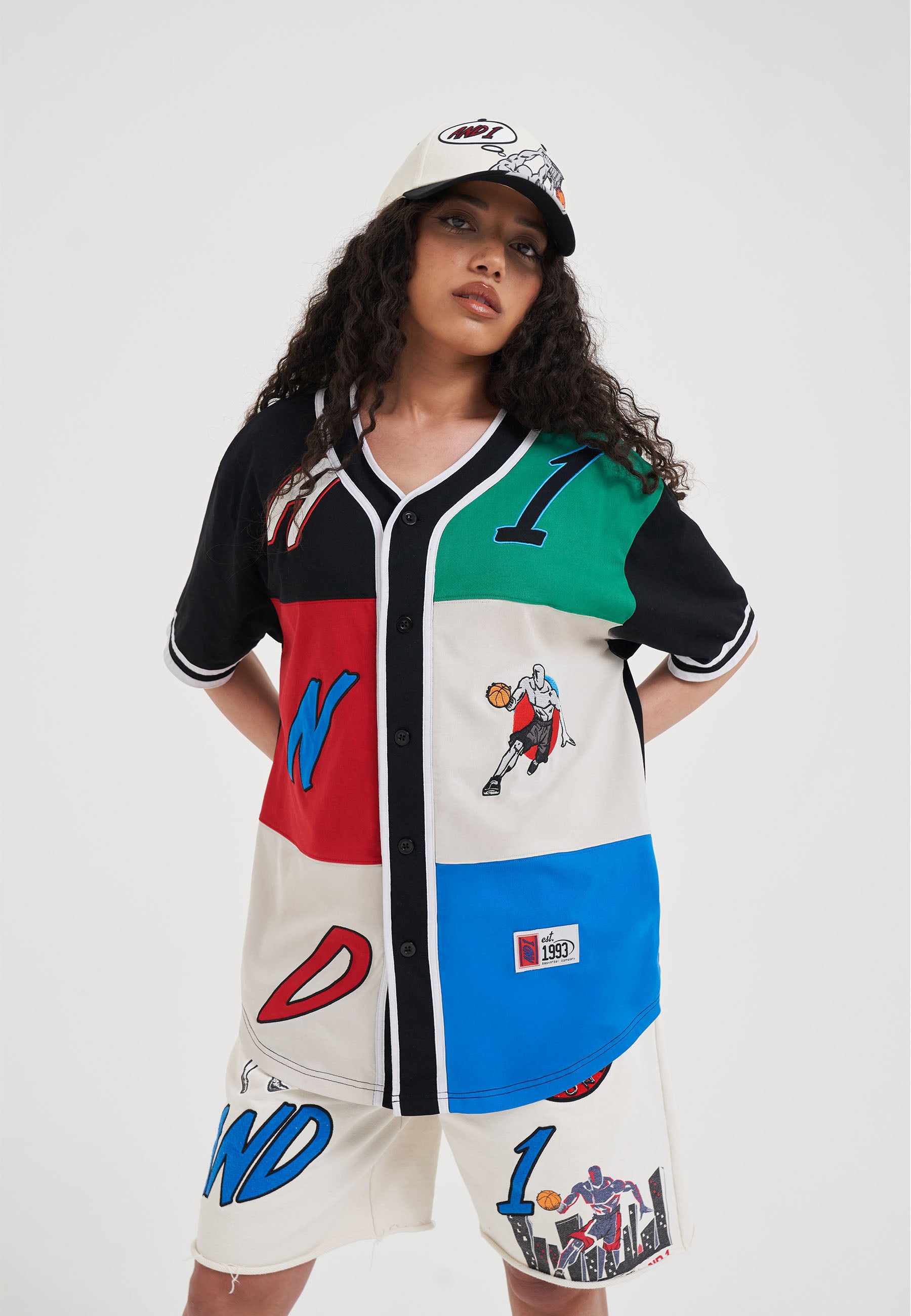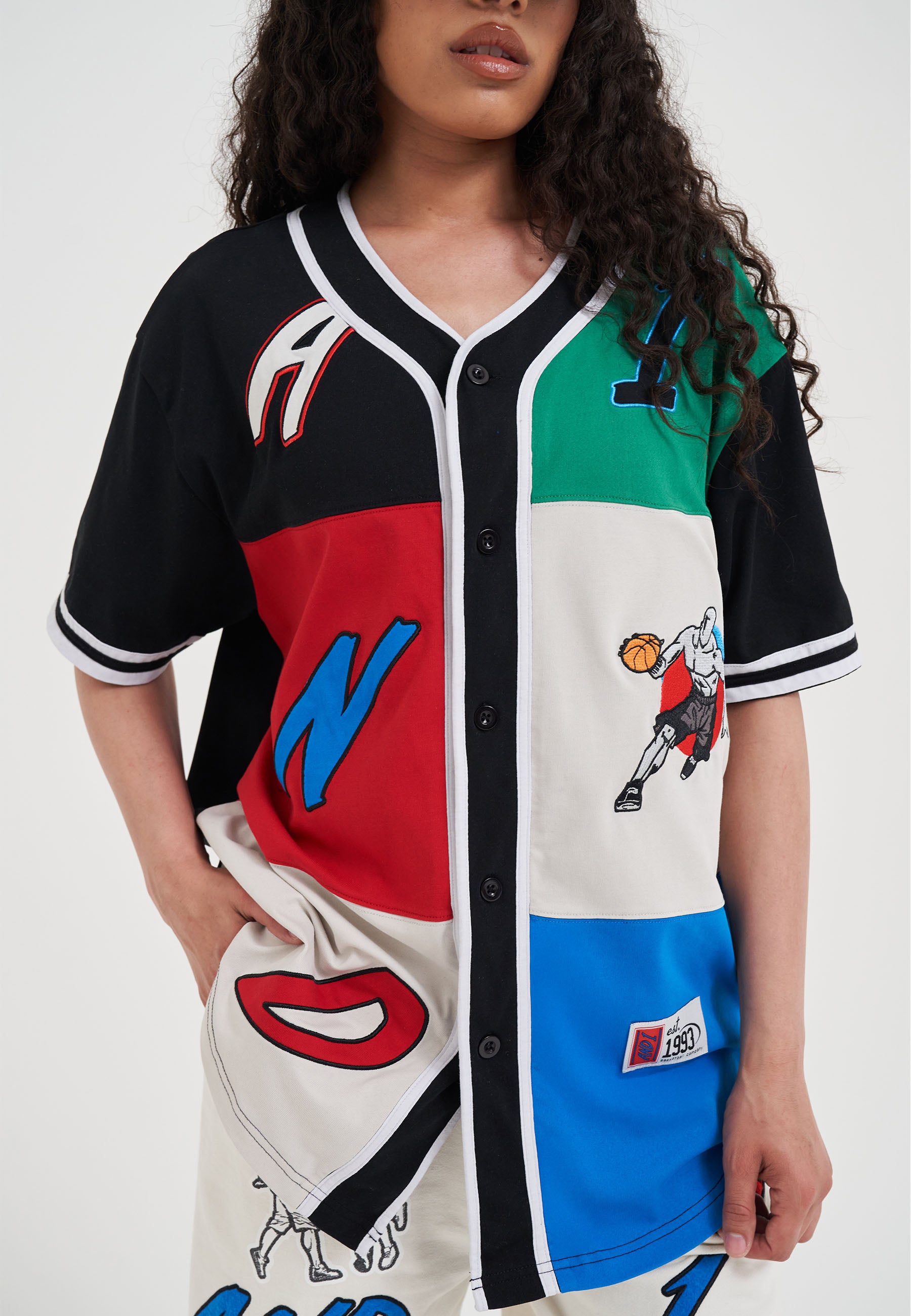 WOMENS PATCHWORK BASEBALL JERSEY TOP in Multi Colour