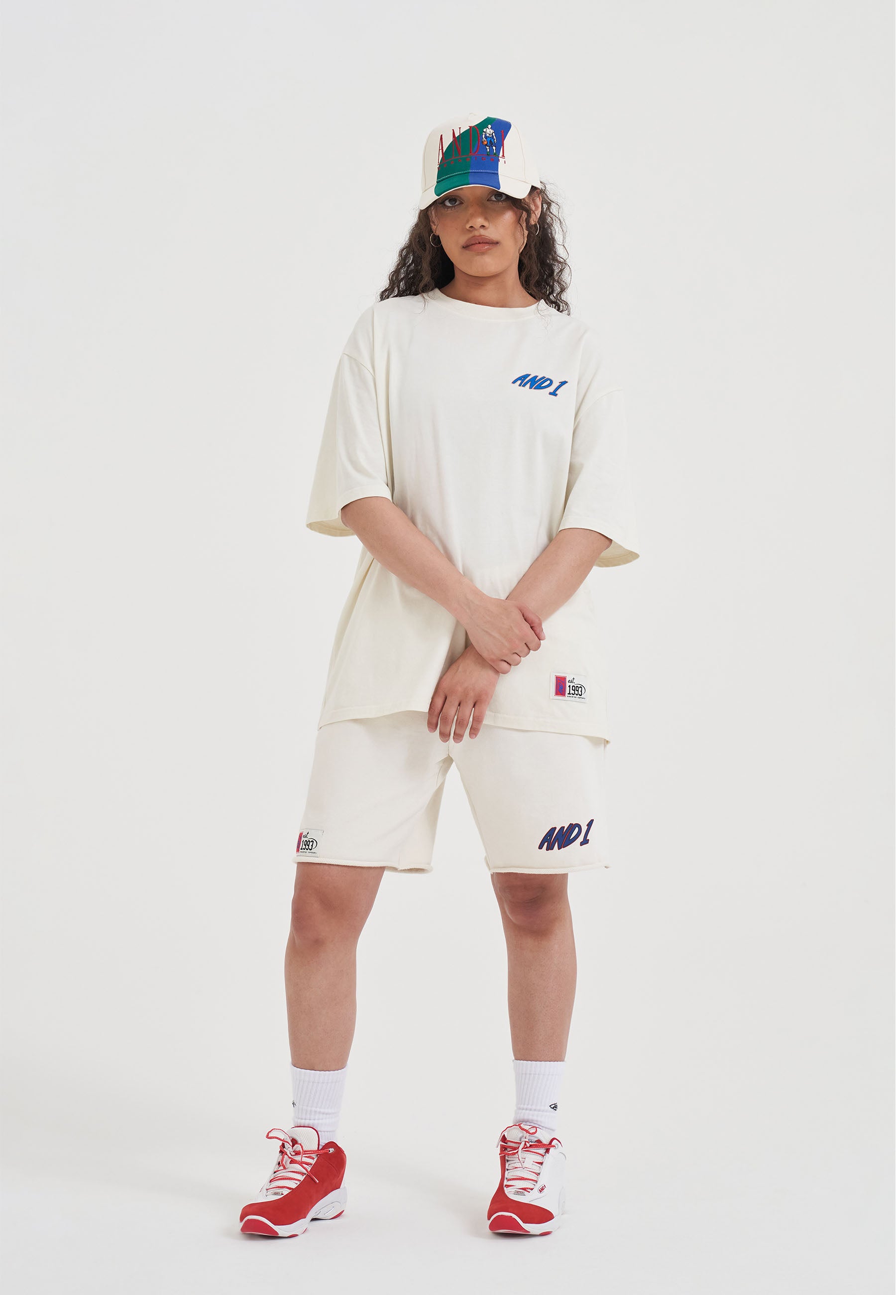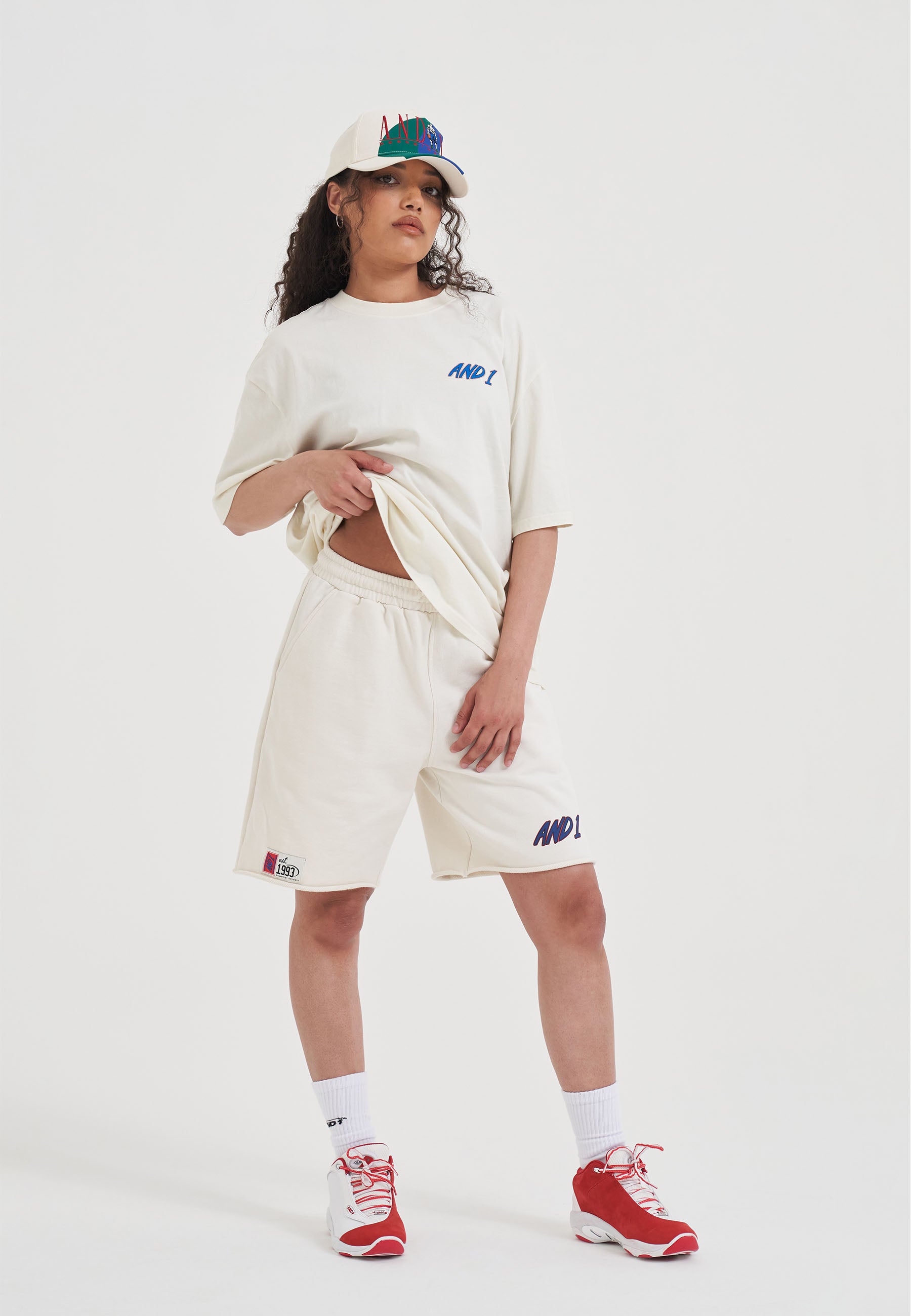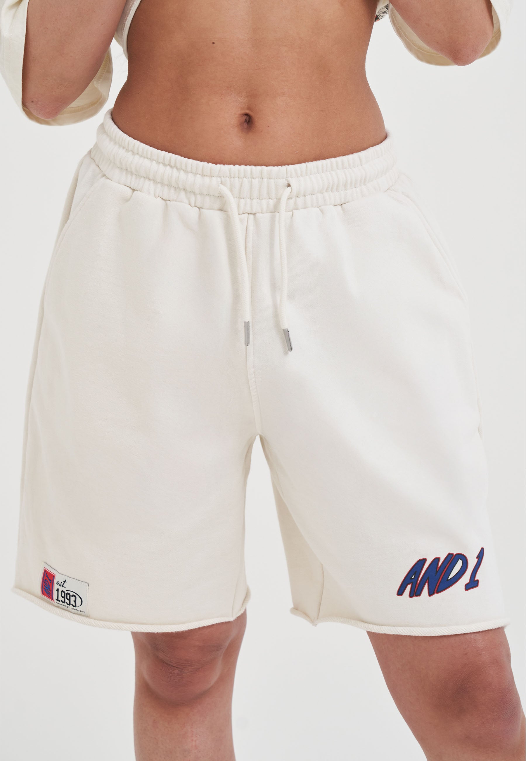 WOMENS RETRO LOGO RAW HEM SHORTS in Ecru